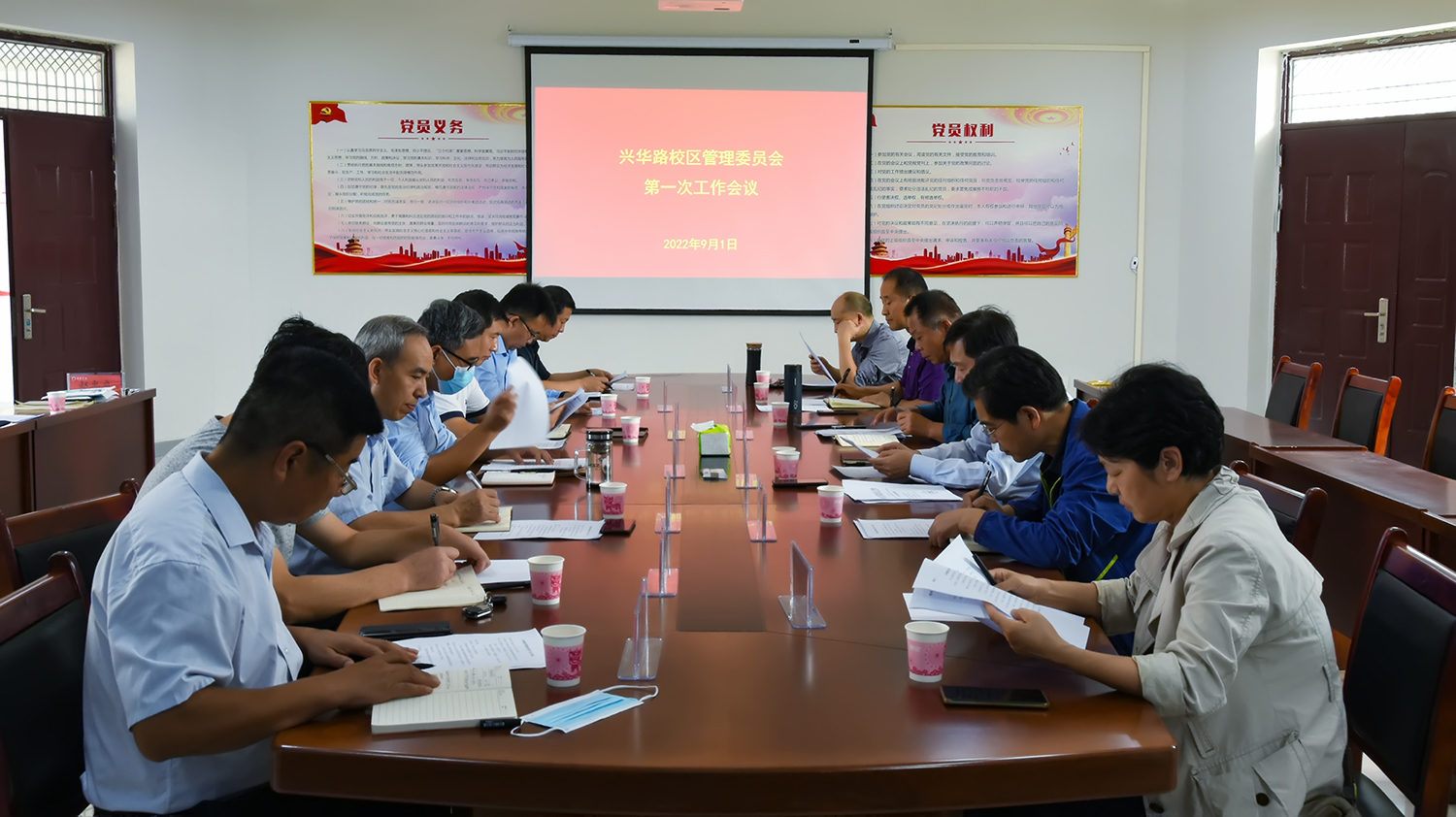 2022年9月1日上午,兴华路校区管理委员会在博雅书院会议室召开工作会议,会议由校纪委书记、兴华路校区管理委员会主任王东晓主持,兴华路校区管理委员会常务副主任、副主任,综合事务办公室主任、副主任,管委会各科室负责人,博雅书院党委副书记、团委副书记、党政办公室主任、学生事务办公室副主任参加了会议。