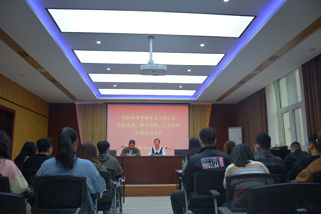 为进一步深化我院学生会改革,支持和引导学生会更好地服务青年学生成长成才。2021年10月8日上午,我院于第一会议室召开了学生会工作人员专题培训会议。