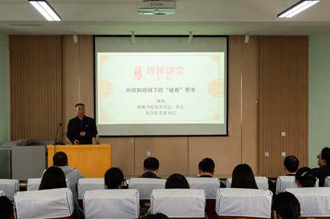 博雅书院成立以来,按照书院制育人模式,积极探索通识教育新模式,精心开展第二课堂活动。10月29日,博雅书院党委书记、院长、医学院党委书记康伟以《书院制视域下的“破卷”思考》为主题作了首场报告。博雅书院班子成员、各科室负责人、辅导员代表以及学生代表聆听了报告。