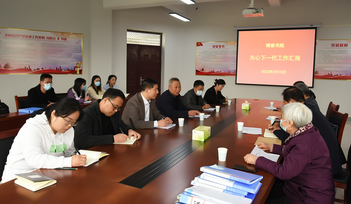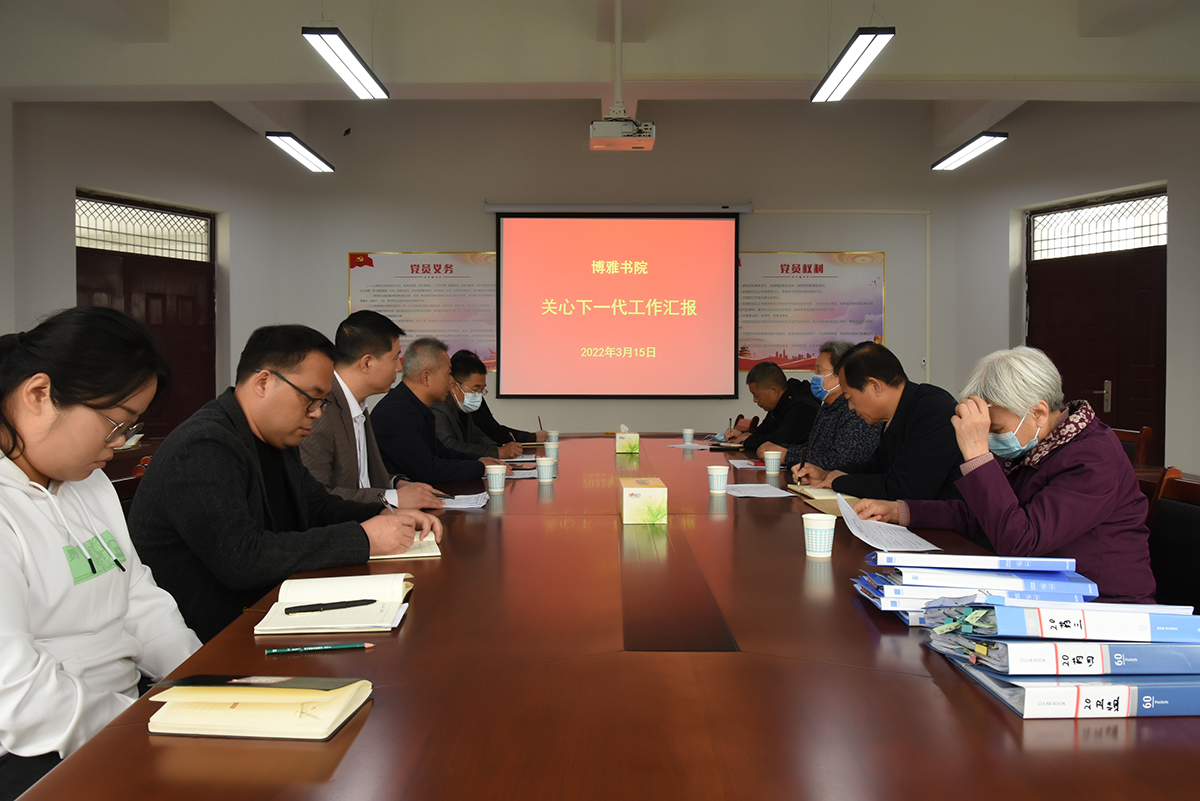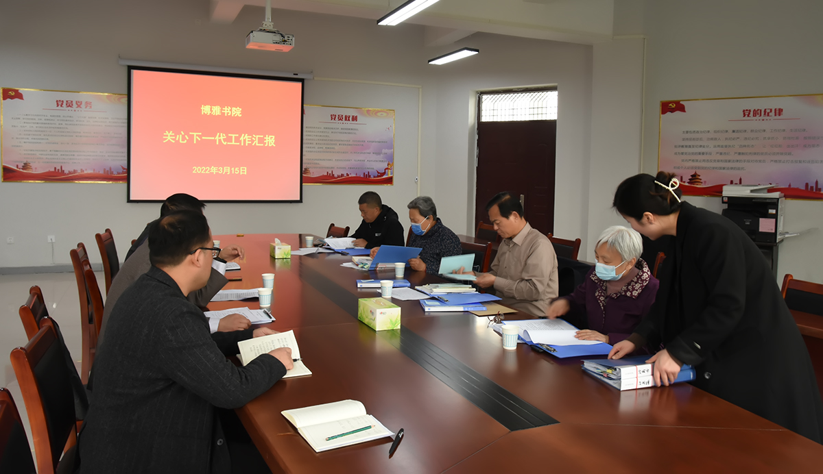 3月15日,学校关工委副主任黄桂贞、秘书长刘国臣、张谦智、涂白诚一行到博雅书院检查指导关心下一代工作,检查汇报会议在博雅书院党建活动室举行,博雅书院领导班子、关工委成员、各科室负责人和辅导员参加了检查汇报会议。