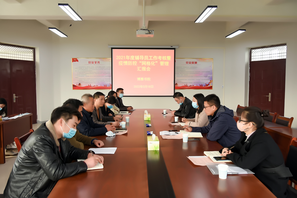 3月18日,校纪委第一纪检监查室主任岳晓娜、学生处副处长李鹏、学生管理科科长杨乐、综合科科长平志惠到博雅书院检查督导2021年度辅导员工作考核暨疫情防控“网格化”管理工作,会议在博雅书院党建活动室举行。会议由医学院党委书记、博雅书院党委书记、院长康伟主持,博雅书院领导班子、后勤管理服务中心和保卫处的相关负责同志、博雅书院各科室负责人及育人导师参加了检查汇报会。