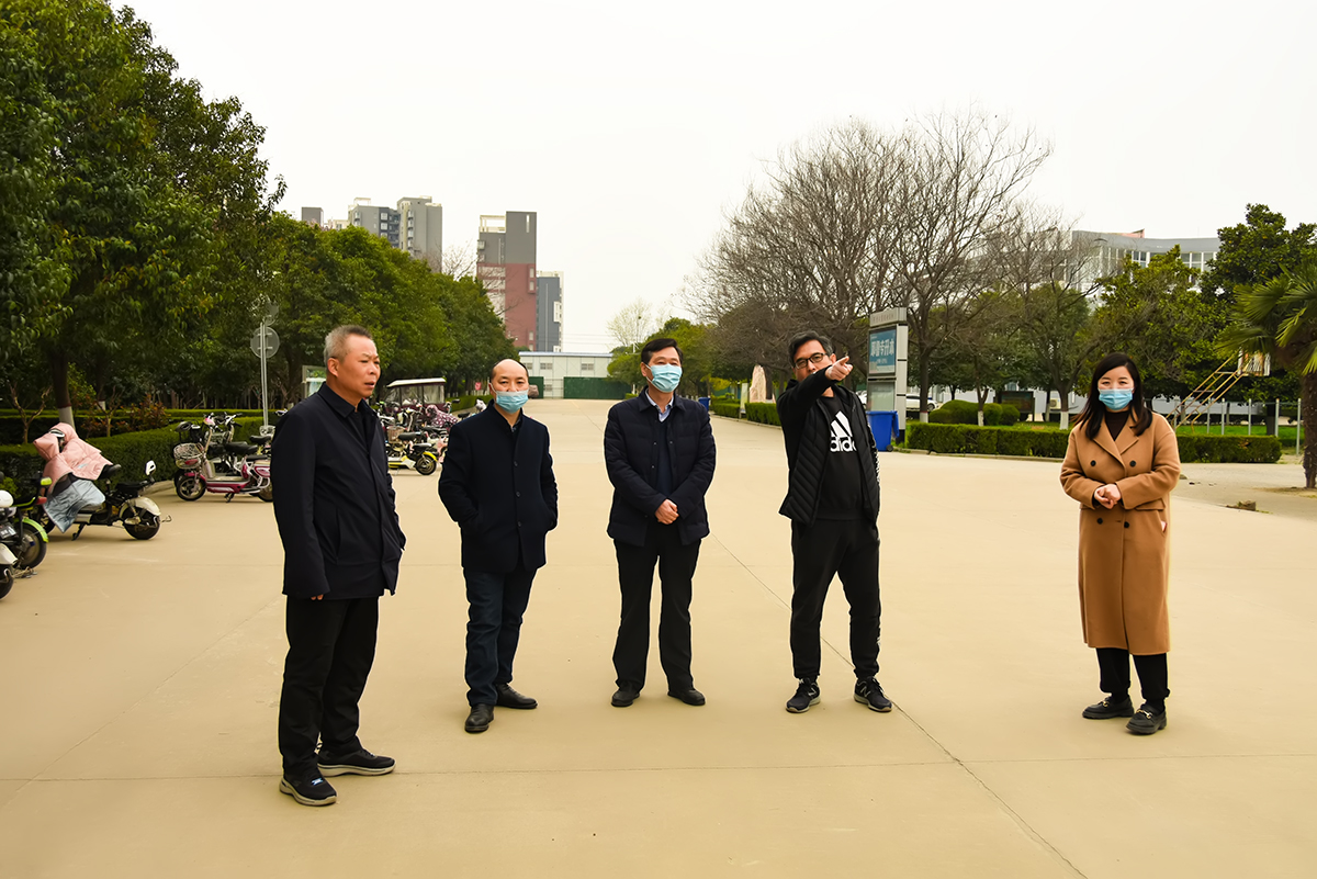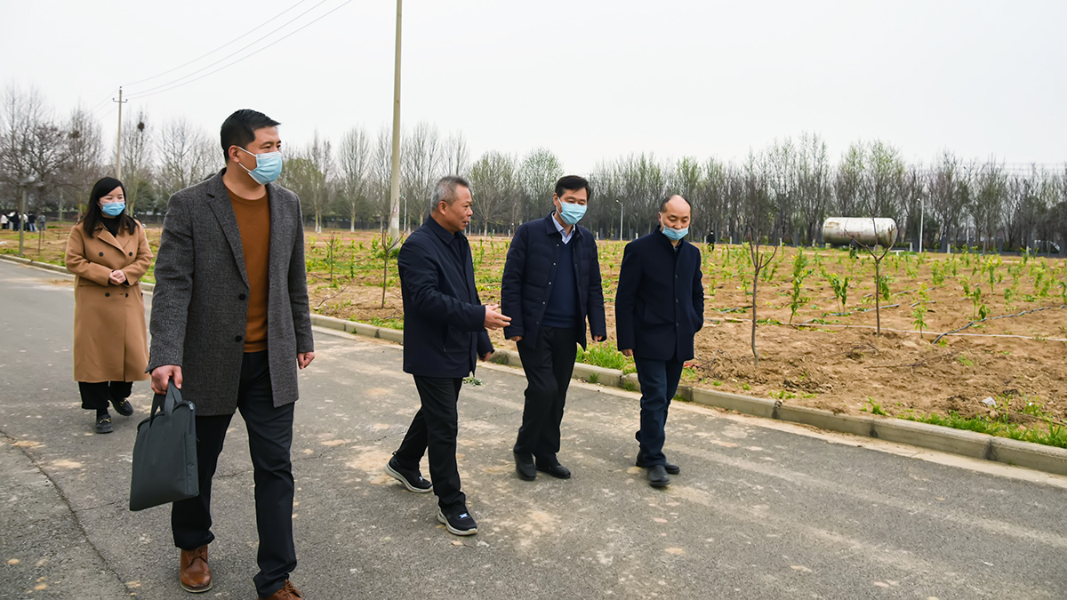王东晓书记深入五里岗路提升工程现场、学生餐厅、学生宿舍、中草药植物园进行调研指导。