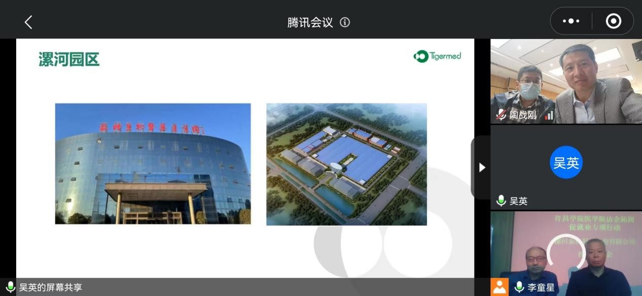 李学峰院长对与漯河泰格科技股份有限公司的交流、合作进行了具体的安排,尤其是近期漯河泰格科技股份有限公司和医学院毕业生的线上交流座谈会,希望泰格公司通过线上招聘会吸纳我校医学相关专业优秀毕业生。