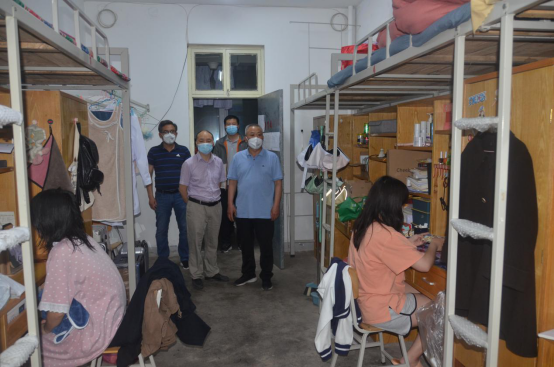 5月5日,我校疫情防控形势陡然严峻,医学院李学峰院长按照学校工作要求即刻入住校区,会同康伟书记、陶战刚副书记、牛磊副院长投入到兴华路校区各项疫情防控工作中,在完成当天的信息排查、核酸检测等防控工作后,下午6点医学院、博雅书院领导班子组织医学院、博雅书院、保卫、后勤在校人员到各学生宿舍看望学生,进行心理安抚、疏导,引导学生传播正能量,进行正能量的舆论引导。巡查学生宿舍结束后,医学院、博雅书院领导班子连夜对兴华路校区疫情防控工作进行深入研判,安排部署5月6日的具体防控工作。