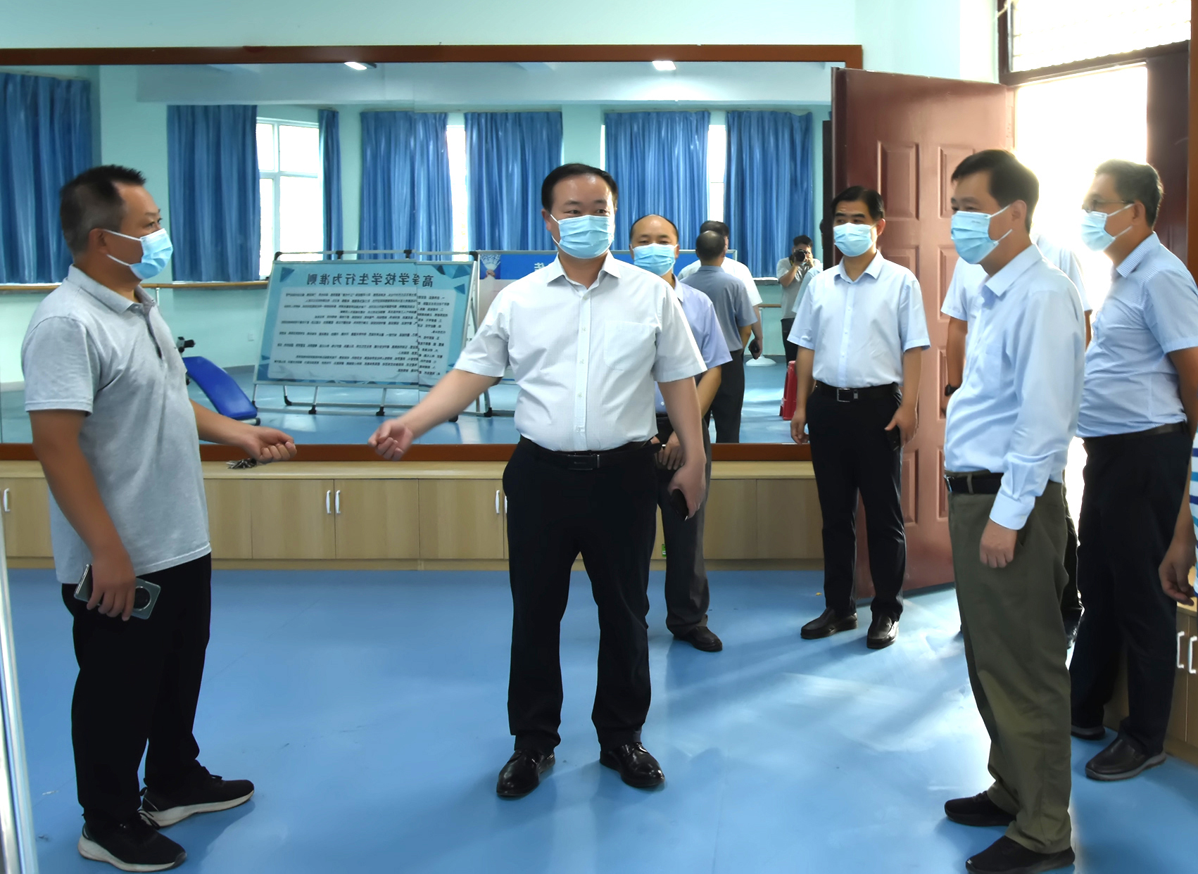 9月8日下午校党委书记郭涛带队来到兴华路校区督导检查秋季学期开学准备工作。校纪委书记、兴华路校区管理委员会主任王东晓陪同,党委办公室、党委组织部、教务处、学生处、保卫处、后勤管理服务中心等职能部门相关负责同志参加了督导检查。