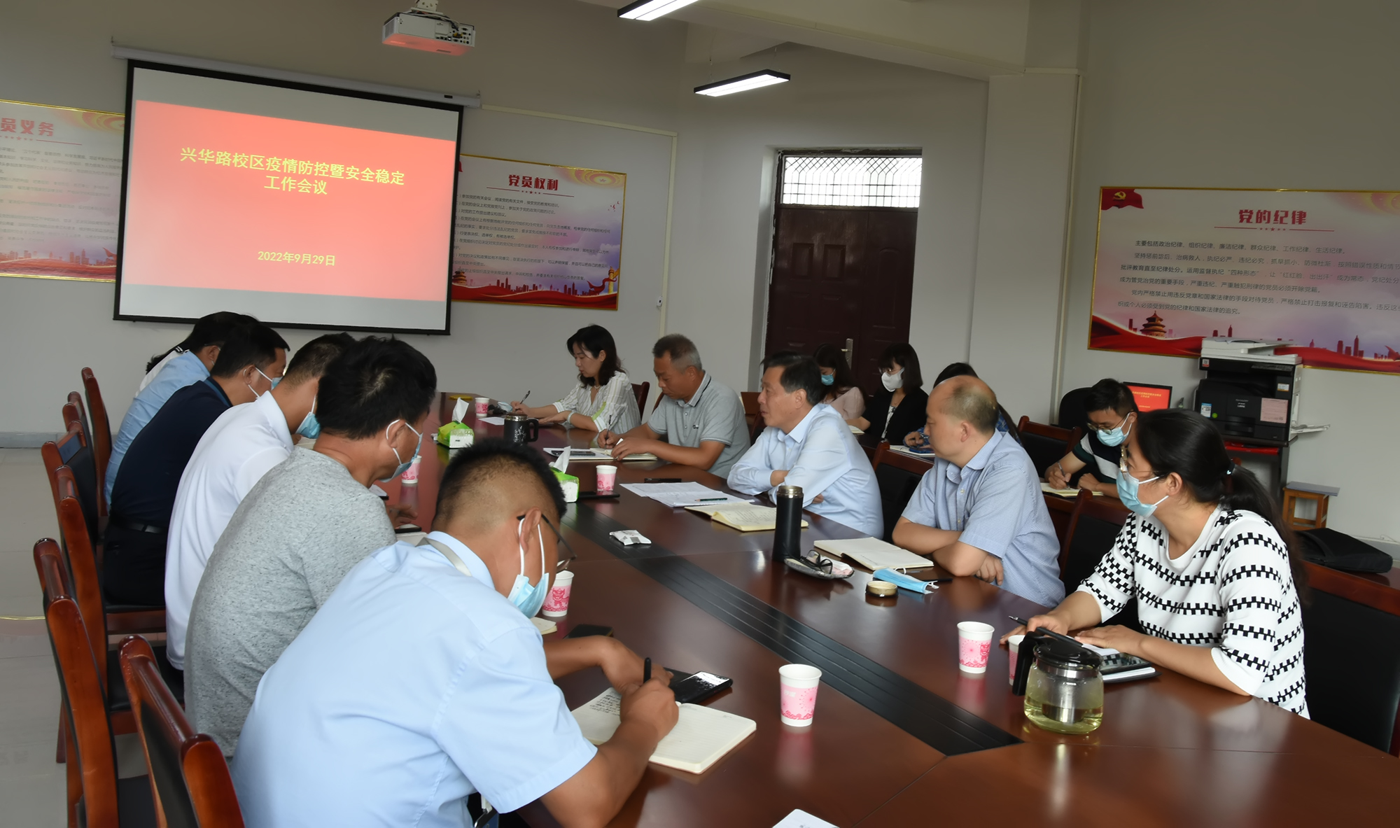 9月29日下午,兴华路校区疫情防控暨安全稳定工作会议在博雅书院会议室召开,会议由校纪委书记、兴华路校区管理委员会主任王东晓主持,兴华路校区管理委员会、医学院、博雅书院领导班子及相关科室负责人、辅导员参加会议。