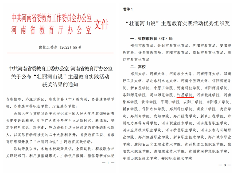 近日,中共河南省委教育工委、河南省教育厅公布了“壮丽河山说”主题教育实践活动获奖情况,我校荣获优秀组织奖,我院辅导员沈祺被评为优秀指导老师、学生刘继呵荣获人气之星奖。