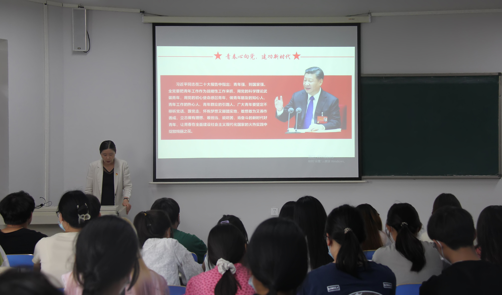 李俊杰带领大家回顾了习近平总书记在党的二十大报告中对青年的寄语,并指出新时代中国青年是实现中华民族伟大复兴的先锋力量,青年大学生要“青春心向党,建功新时代”。授课中,李俊杰通过引用党史文献、例举鲜明事例、播放红色影视等方式,活泼生动、深入浅出地引导学员们理解领悟中国共产党的性质、宗旨和最高理想。同学们也深刻认识到,中国共产党是中国工人阶级的先锋队,同时是中国人民和中华民族的先锋队,是中国特色社会主义事业的领导核心,代表中国先进生产力的发展要求,代表中国先进文化的前进方向,代表中国最广大人民的根本利益。全心全意为人民服务是党的宗旨。党的最高理想和最终目标是实现共产主义。最后,李俊杰抛出问题,请大家结合案例,思考:作为00后的你们,你的入党初心是什么?你准备怎样传承老一辈共产党人的初心?你如何理解新时代青年大学生肩负的使命?