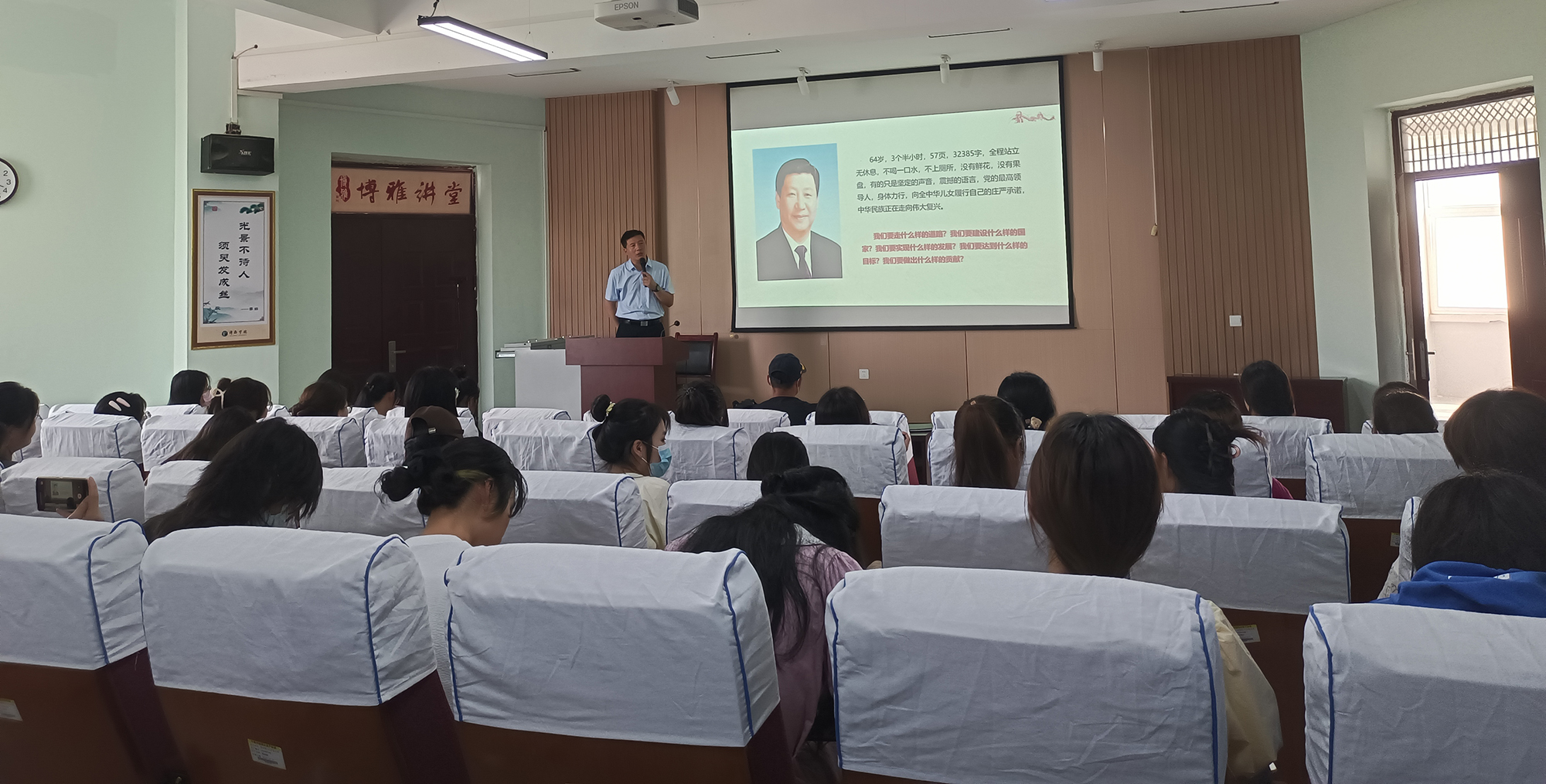 学史者不愚,知史者不慌,用史者不乱。百年党史既是固根涵源的营养液、揽镜自照的清醒剂,更是鉴往知来的航标灯。通过此次党课学习,学员们明确了从百年党史这本丰厚的教科书中汲取前行的智慧和力量,坚定理想信念,自觉崇尚英雄,弘扬红色精神,接续砥砺奋斗,努力成为担当民族复兴大任的时代新人,让青春在党和人民最需要的地方绽放绚丽之花。(摄影:沈祺)