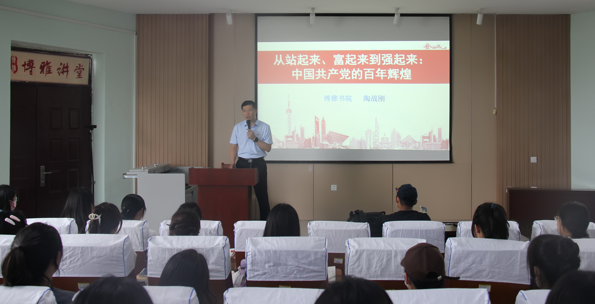 5月19日,博雅书院党委副书记、副院长陶战刚在博雅书院博雅讲堂302,以“从站起来、富起来到强起来:中国共产党的百年辉煌”为题为入党积极分子作专题党课。