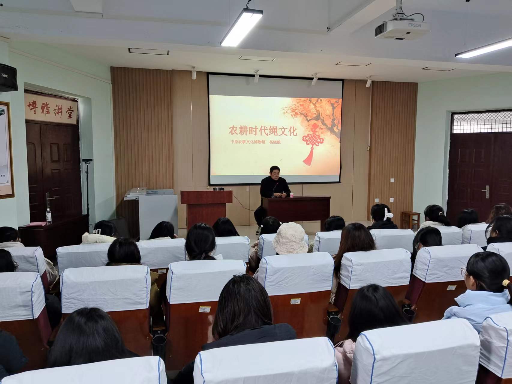 12月15日,博雅书院“一站式”学生社区讲堂邀请我校中原农耕文化博物馆研究员杨晓航老师以《农耕时代绳文化》开展专题讲座。讲座在博雅讲堂举行,80余名同学聆听讲座。