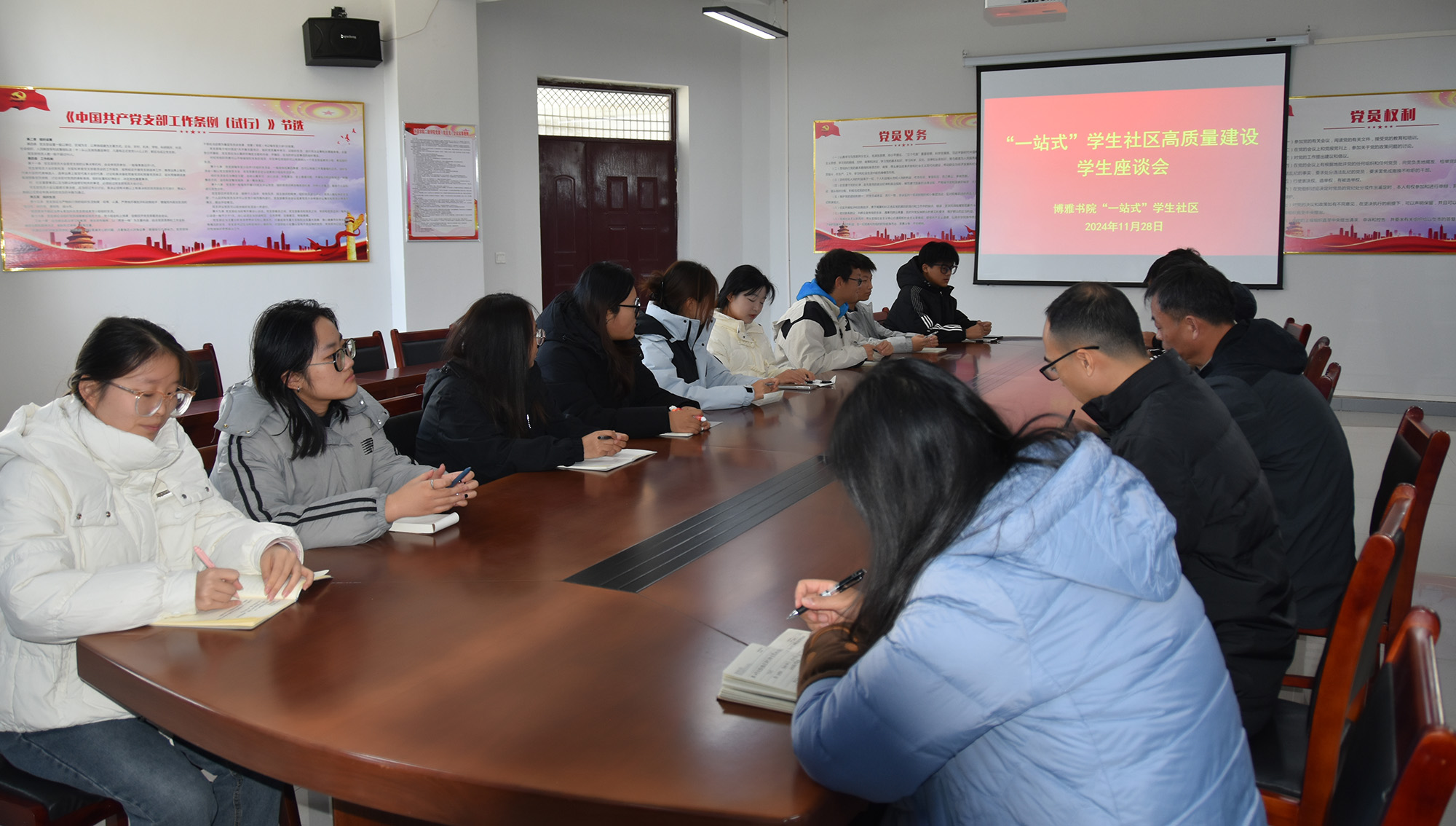 为进一步推动“一站式”学生社区的高质量发展,切实解决学生们最迫切、最关心的问题,了解学生社区生活情况,11月28日,我书院社区召开“一站式”学生社区高质量建设学生座谈会,旨在倾听学生心声,深入了解学生在社区生活与学习中的需求和体验,为进一步优化社区建设、提升服务质量收集宝贵意见和建议。书院社区领导班子成员、科级干部、辅导员和学生代表参与此次会议。