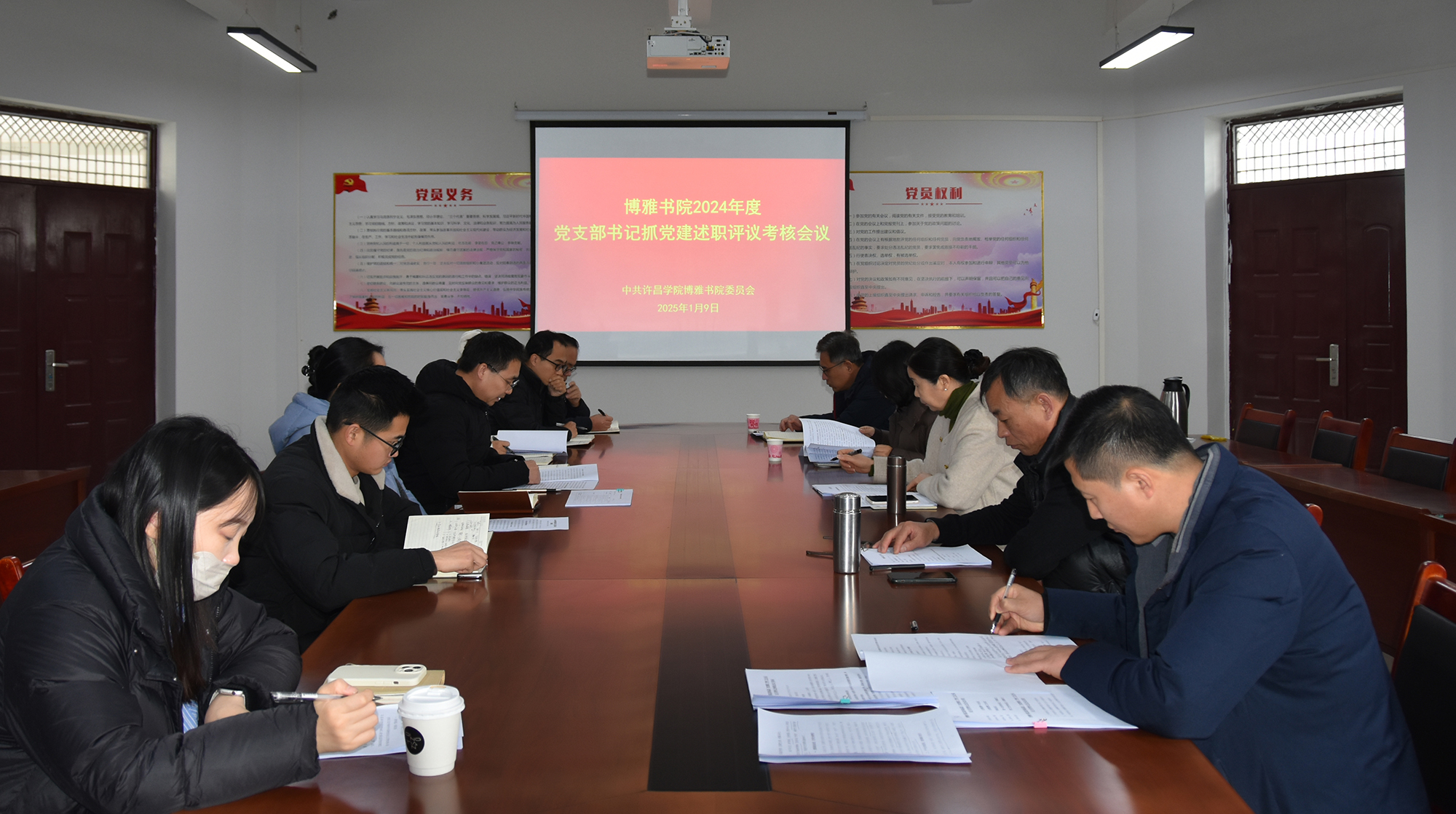 1月9日,博雅书院“一站式”学生社区在党建活动室201召开2024年度党支部书记抓党建述职评议考核会议,会议由党委书记李俊杰主持,领导班子、党委委员、支部书记、科级干部以及全体辅导员参加会议。