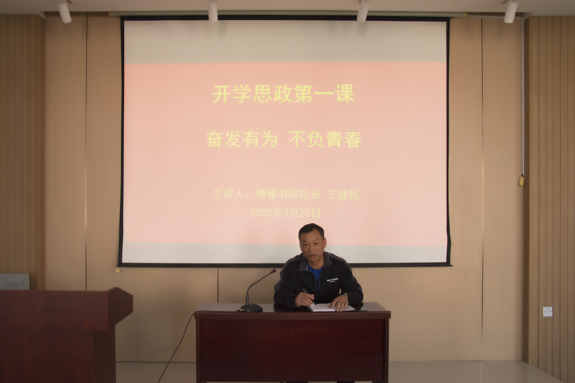 3月25日上午,博雅书院党委书记李俊杰、院长王建民分别以《勇担新的文化使命,激扬强大精神力量》、《奋发有为、不负青春》为题讲授开学思政第一课,学生代表80余人聆听讲座。