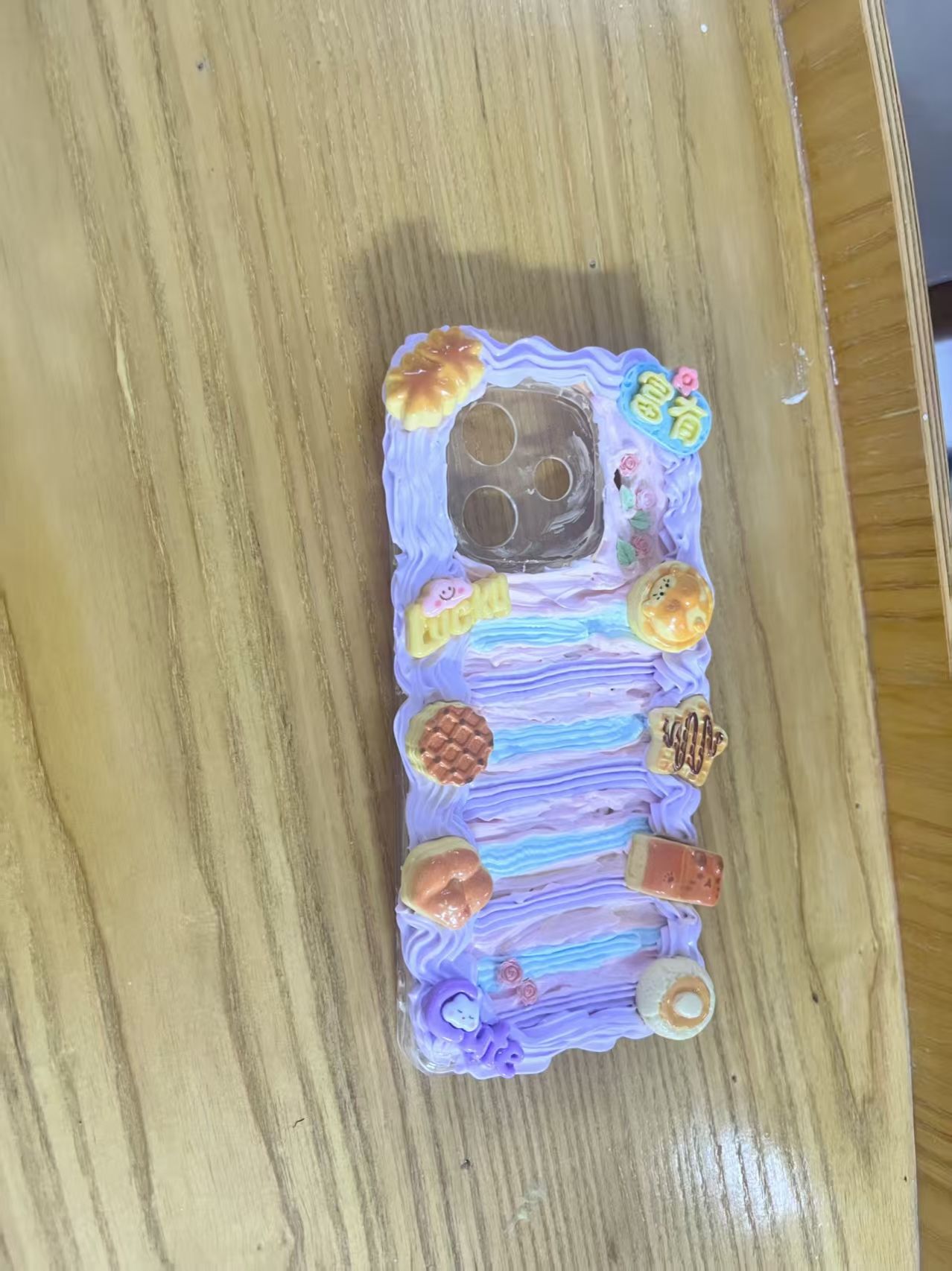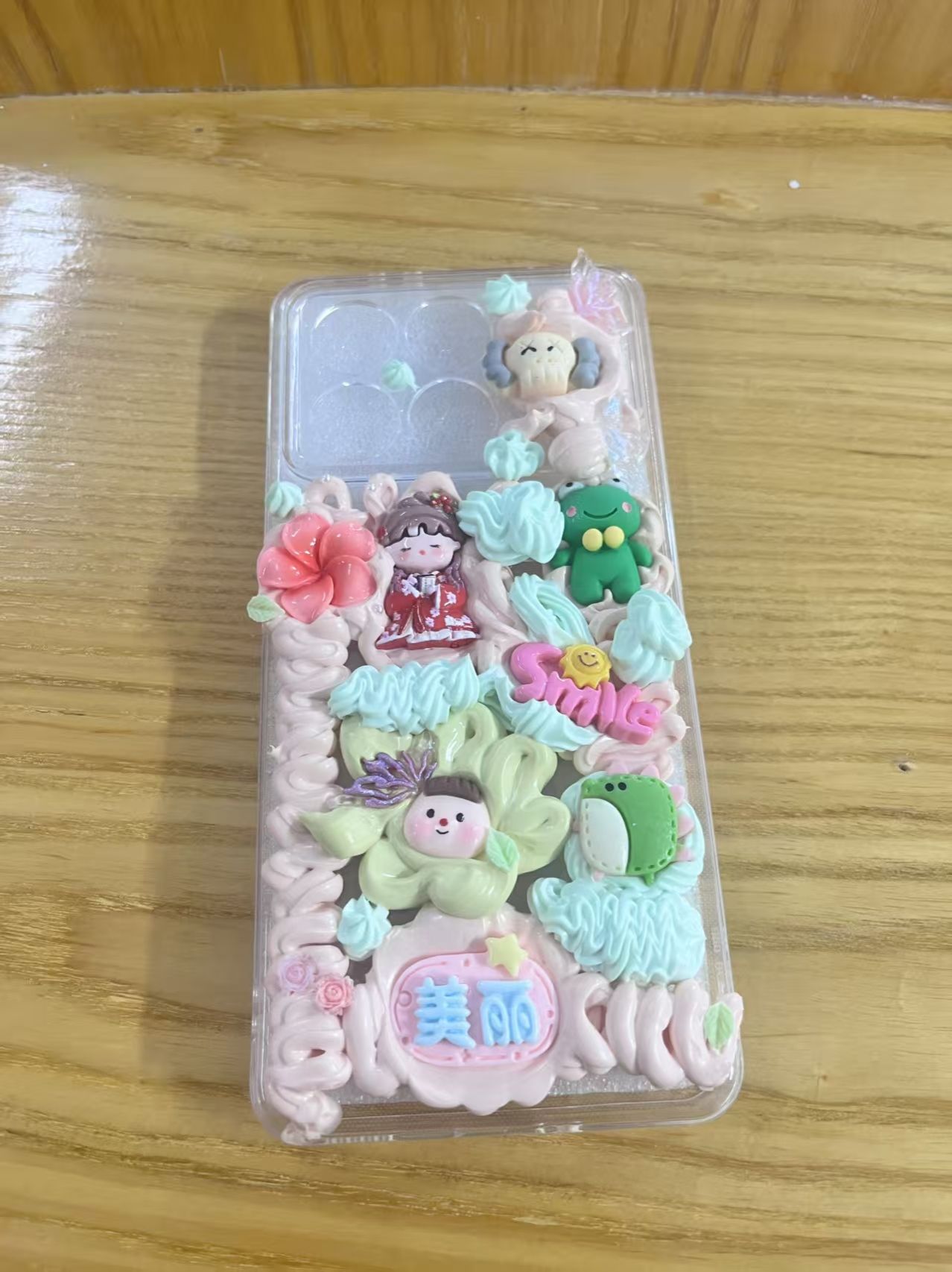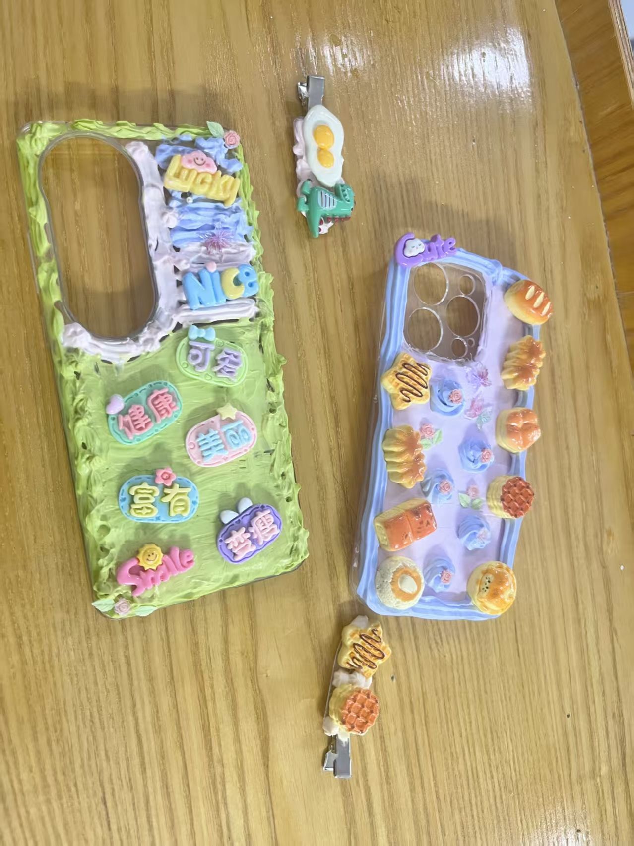 活动当天,博雅书院楼前人潮涌动,欢声笑语不断。参与者们在社团工作人员指导下,手持裱花嘴,将细腻的奶油胶自由挥洒于手机壳、发夹、钥匙扣等载体上,辅以闪片、卡通公仔、珍珠等丰富配饰,创作出风格各异的作品,每一件作品都凝聚着创作者的细腻的心意与巧思。