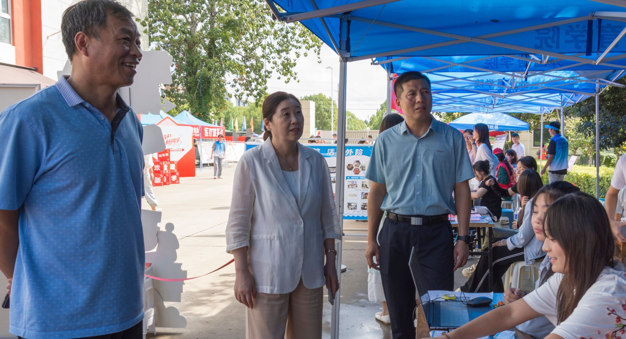 学校领导高度重视迎新工作,9月9日,校领导深入兴华路校区迎新现场,走访各专业学院迎新点、学生食堂、宿舍,详细了解新生报到情况,校长郑直等校领导与师生们深入交流,亲切关怀报到情况,慰问服务在一线的教职工和学生志愿者,并与家长和新生热情交流。校领导叮嘱大家要坚持以学生为中心,为新生提供热情、周到、暖心的服务,让新生们感受到学校的关心与爱护,高质量完成2025年迎新工作。
