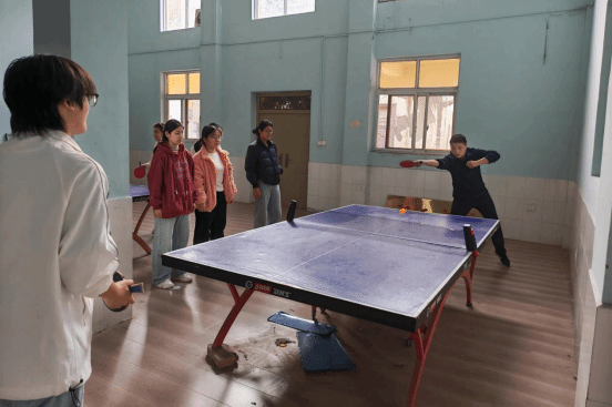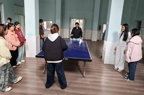 现场气氛热烈,选手们精神饱满、斗志昂扬。发球时的精准落点、对拉中的灵活变线、扣杀时的干脆利落,每一个动作都尽显竞技风采。乒乓球在球台上来回穿梭,时而轻盈跳跃,时而迅猛出击,场边观赛同学的加油声、喝彩声此起彼伏,将现场氛围推向高潮。