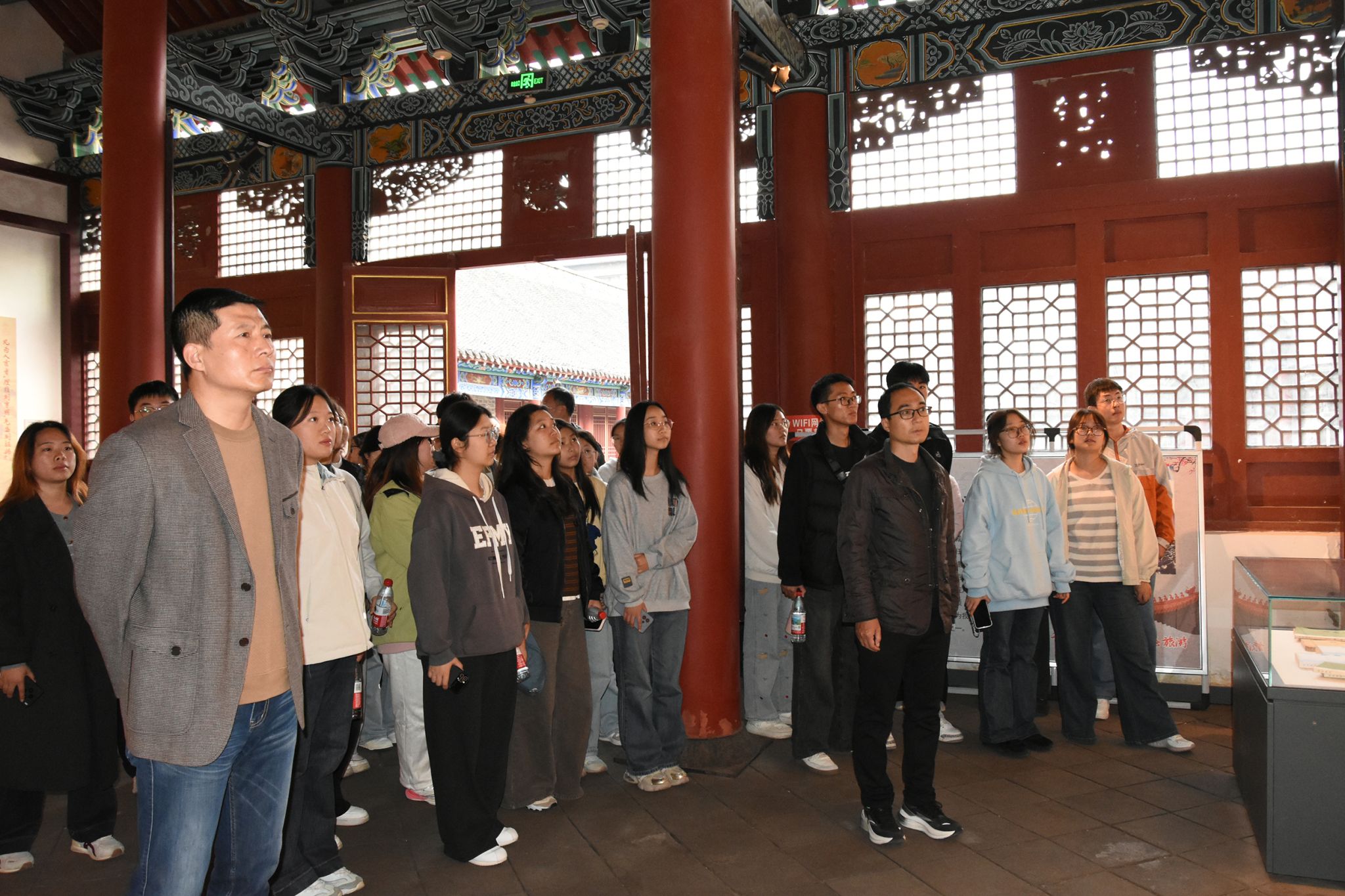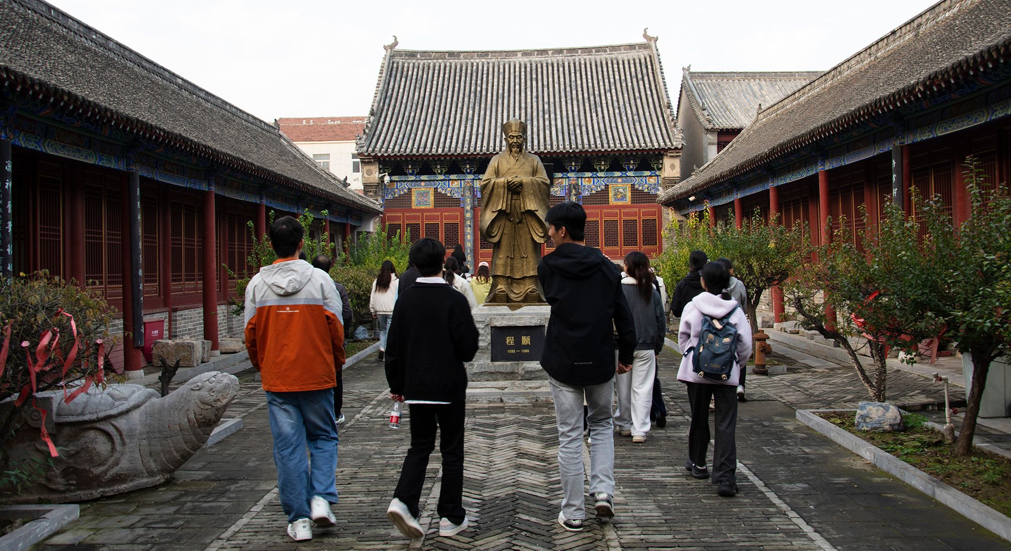 大程书院,为北宋著名理学家、教育家程颢创建,是中国古代书院文化的活化石。同学们怀着崇敬之心踏入这座千年学府。青砖灰瓦,古柏参天,浓厚的文化气息瞬间将大家带入历史的长河。在讲解员的引导下,同学们参观了立雪讲堂、东文场、西文场等历史遗迹,认真聆听了程颢、程颐“二程”在此讲学论道的历史故事。通过对“程门立雪”等经典典故的实地了解,书本上抽象的理学思想变得生动而具体,先贤们追求真理、严谨治学的精神深深触动了每一位学子。