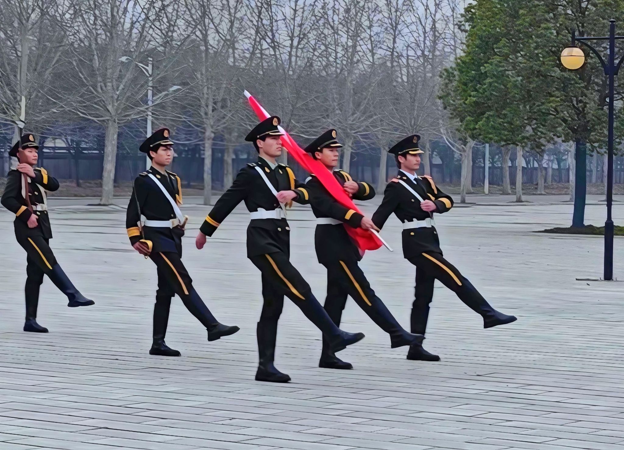 7时整,军容严整的国旗护卫队踏着铿锵有力的步伐,护卫国旗健步入场,伴随着激扬雄壮的国歌,鲜艳的五星红旗冉冉升起。国旗下,全体师生庄严肃立,面向国旗敬礼致敬,齐声高唱国歌,深情表达对伟大祖国的无限热爱和由衷敬意。