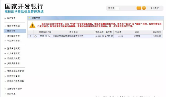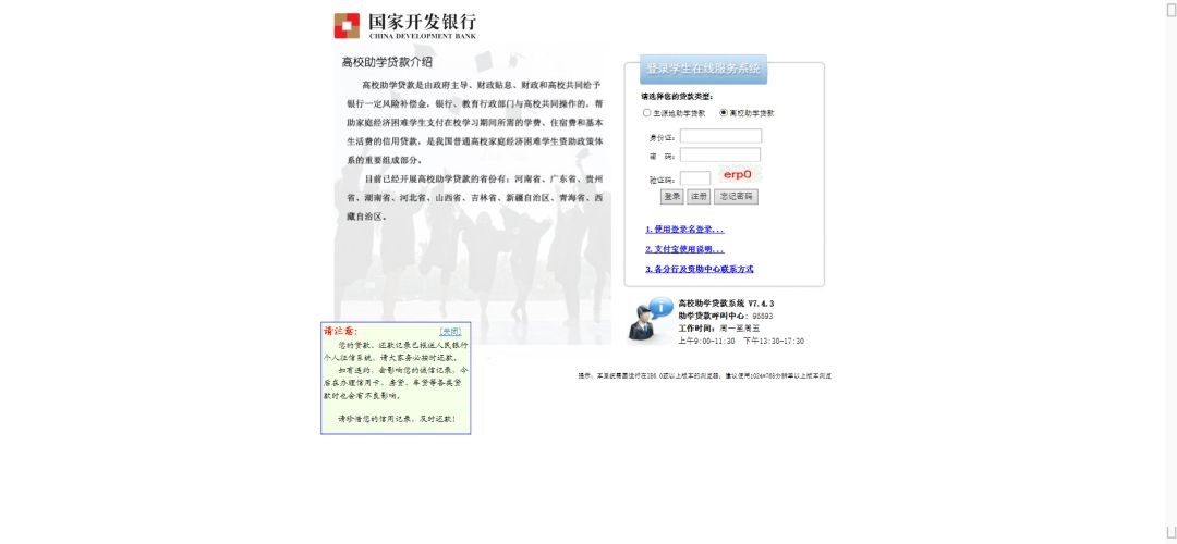 4.进入国家开发银行助学贷款界面,点击【在线还款】;