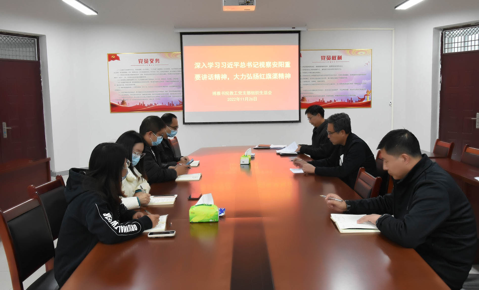 为深入学习贯彻党的二十大精神和习近平总书记视察安阳重要讲话精神,不断增强基层党组织的组织力、凝聚力、战斗力,更好发挥共产党员先锋模范作用,11月26日至30日,博雅书院党委组织各党支部召开“深入学习习近平总书记视察安阳重要讲话精神,大力弘扬红旗渠精神”专题组织生活会。