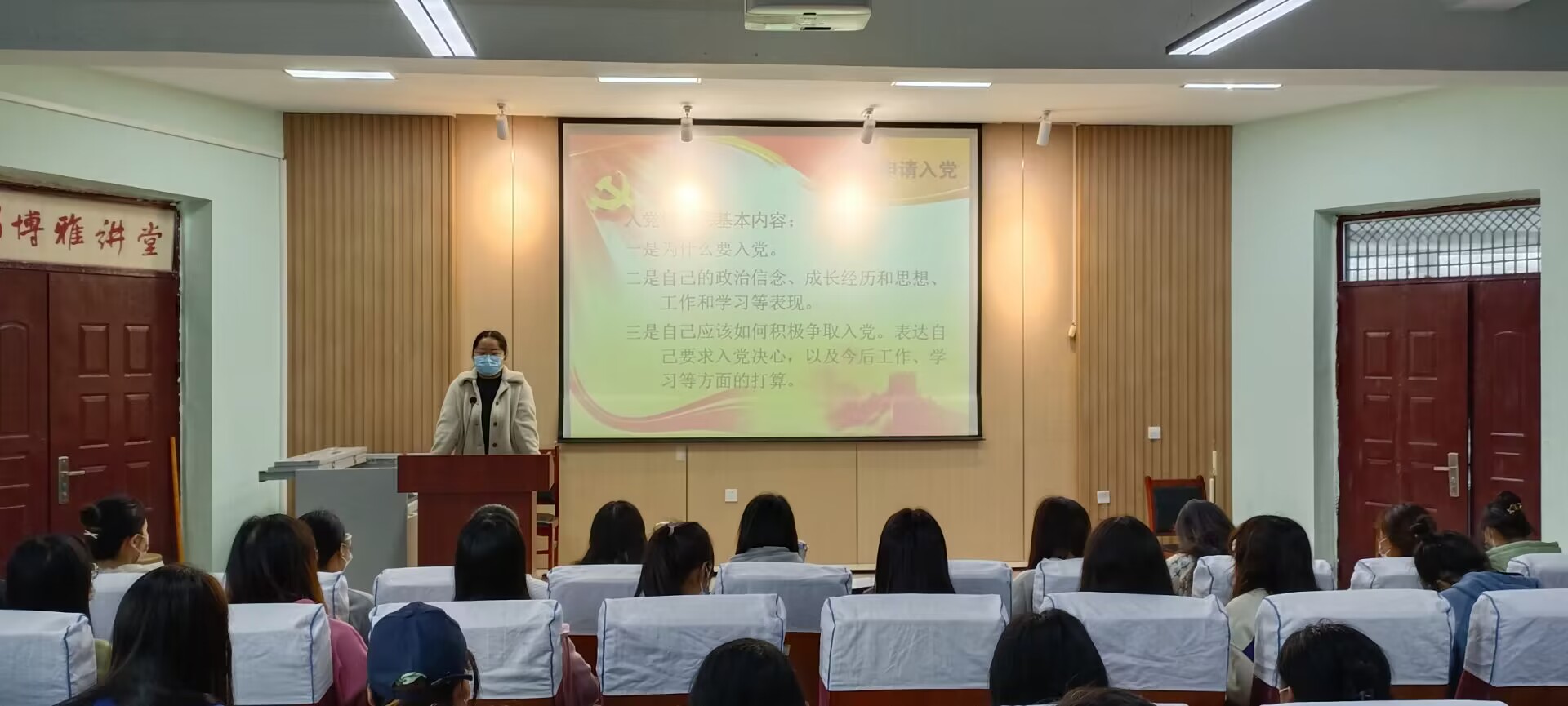 贺老师从“我为什么加入中国共产党”入手,引导学员们要把“全心全意为人民服务,不谋求任何私利和特权,不惜牺牲个人的一切、为实现共产主义奋斗终身”牢记在心,明确使命担当,永葆热血初心。贺老师从“发展党员程序、党员文本材料书写规范、党员组织关系的转接”这三个方面为学员解读党员发展程序,帮助入党积极分子从思想上、行动上做好准备。