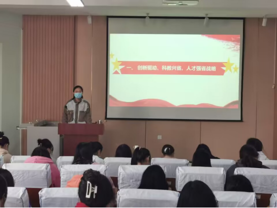 高老师重点给学员们分享“十大战略”其一“创新驱动、科教兴省、人才强省战略”。河南省委重点从整合重组实验室体系、提升高校和科研院所创新源头供给能力、推进规上工业企业创新活动全覆盖、深化科技创新体制机制改革把提高人口质量作为事关全局和长远的大事来抓、持续打造一流创新生态、全力建设国家创新高地这几个方面来实施“创新驱动、科教兴省、人才强省战略”。高老师指出,同学们要关注实时动态,把握时代机遇,增强创新意识,成就个人梦想。