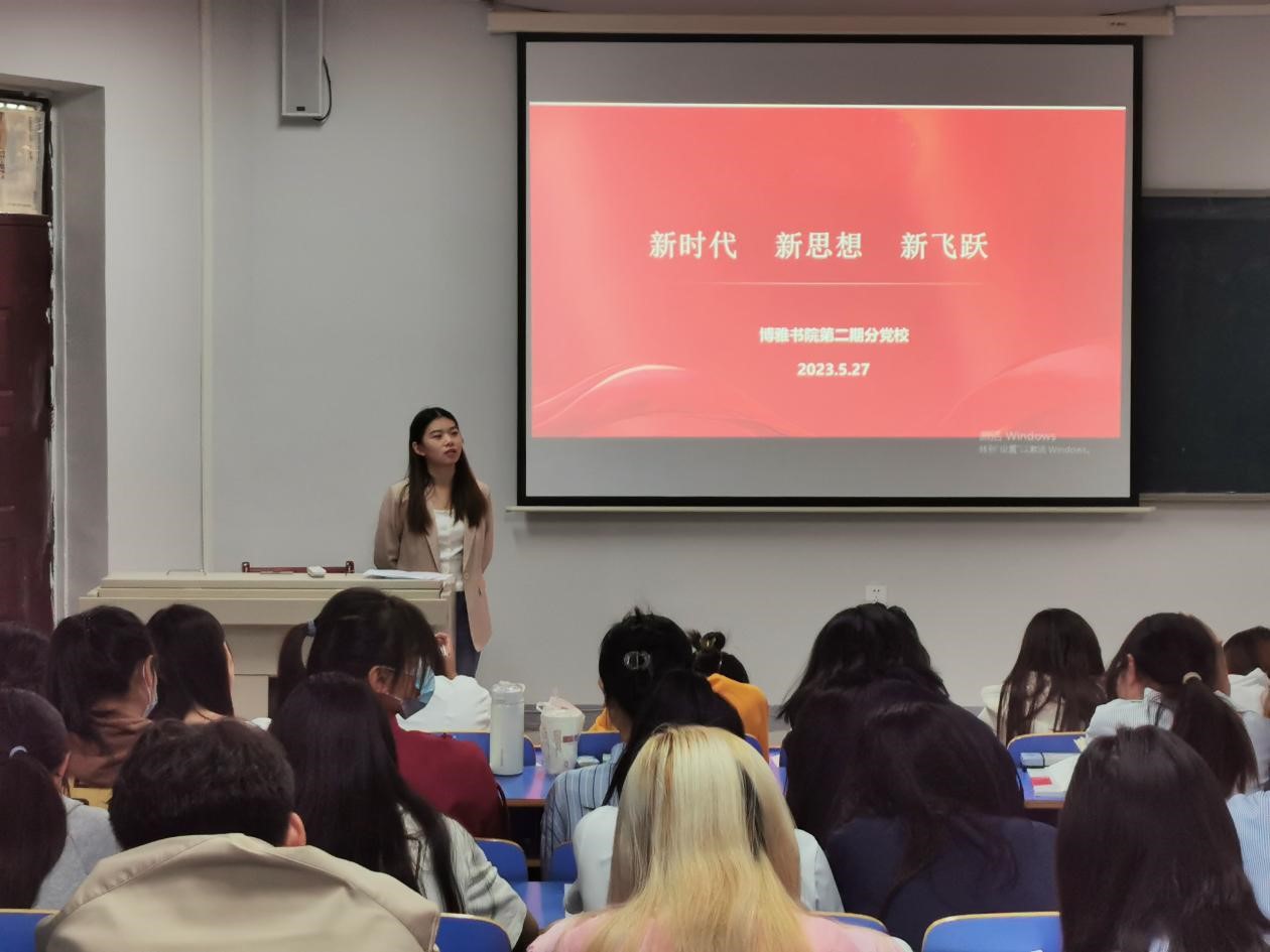为帮助入党积极分子学好用好习近平新时代中国特色社会主义思想的世界观和方法论,5月27日,博雅书院辅导员李亚珠以“新时代、新思想、新飞跃”为主题进行红色微宣讲,为本期193名入党积极分子进行红色教育。