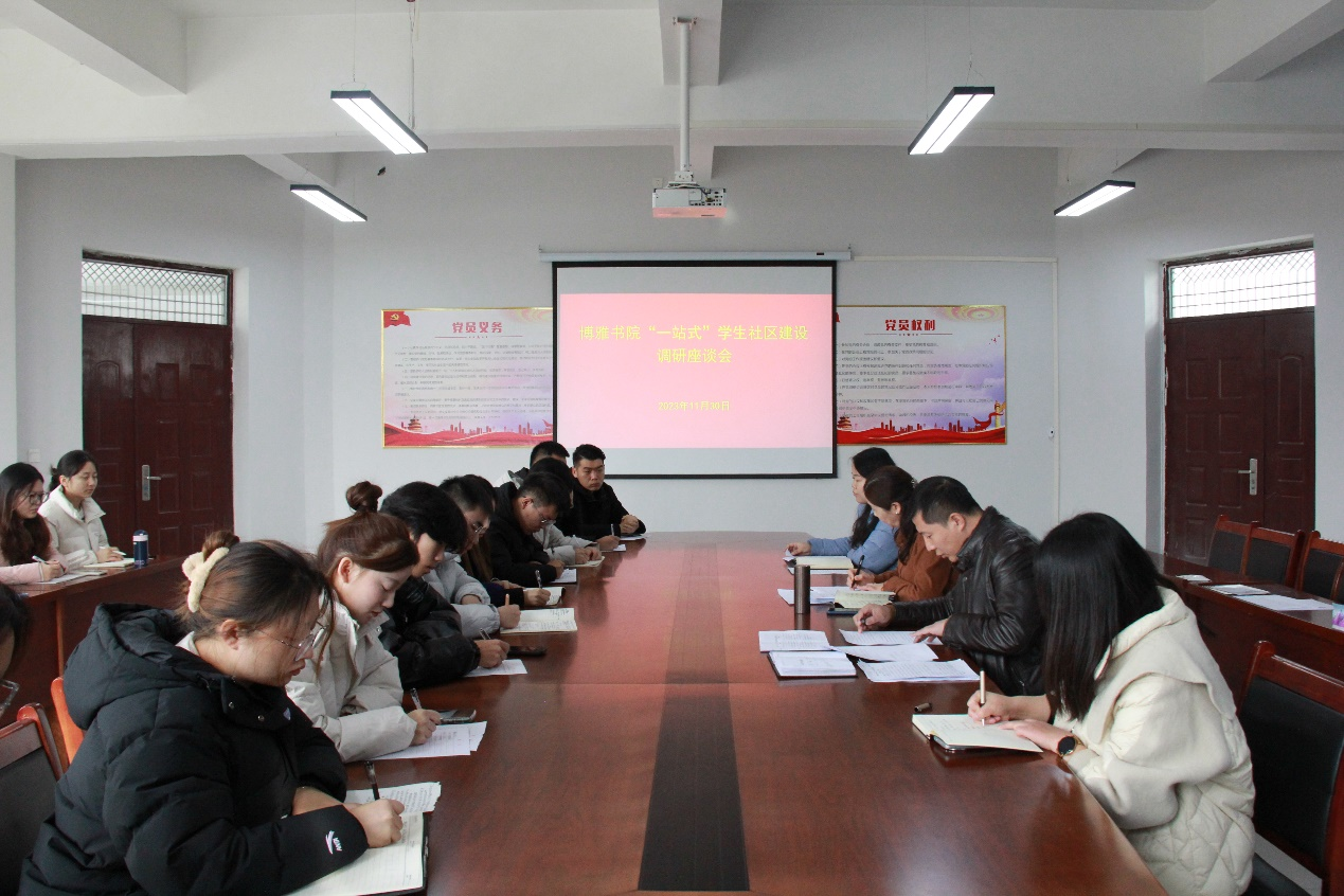 11月30日上午,博雅书院社区召开“一站式”学生社区建设座谈会召开,会议由社区党委书记李俊杰主持。副书记、副院长陶战刚,团委副书记姚婷玉,组织员贺琴及社区学生代表参加会议。
