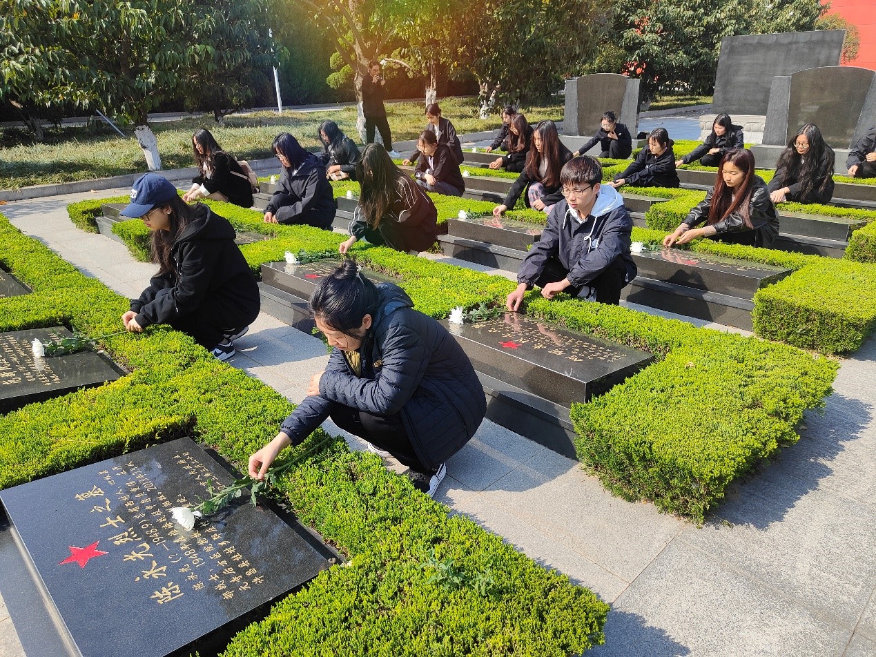 活动在清晨的烈士陵园拉开序幕,同学们面向烈士纪念碑,默哀致敬并敬献鲜花,表达对英雄烈士的崇高敬意和深切怀念。