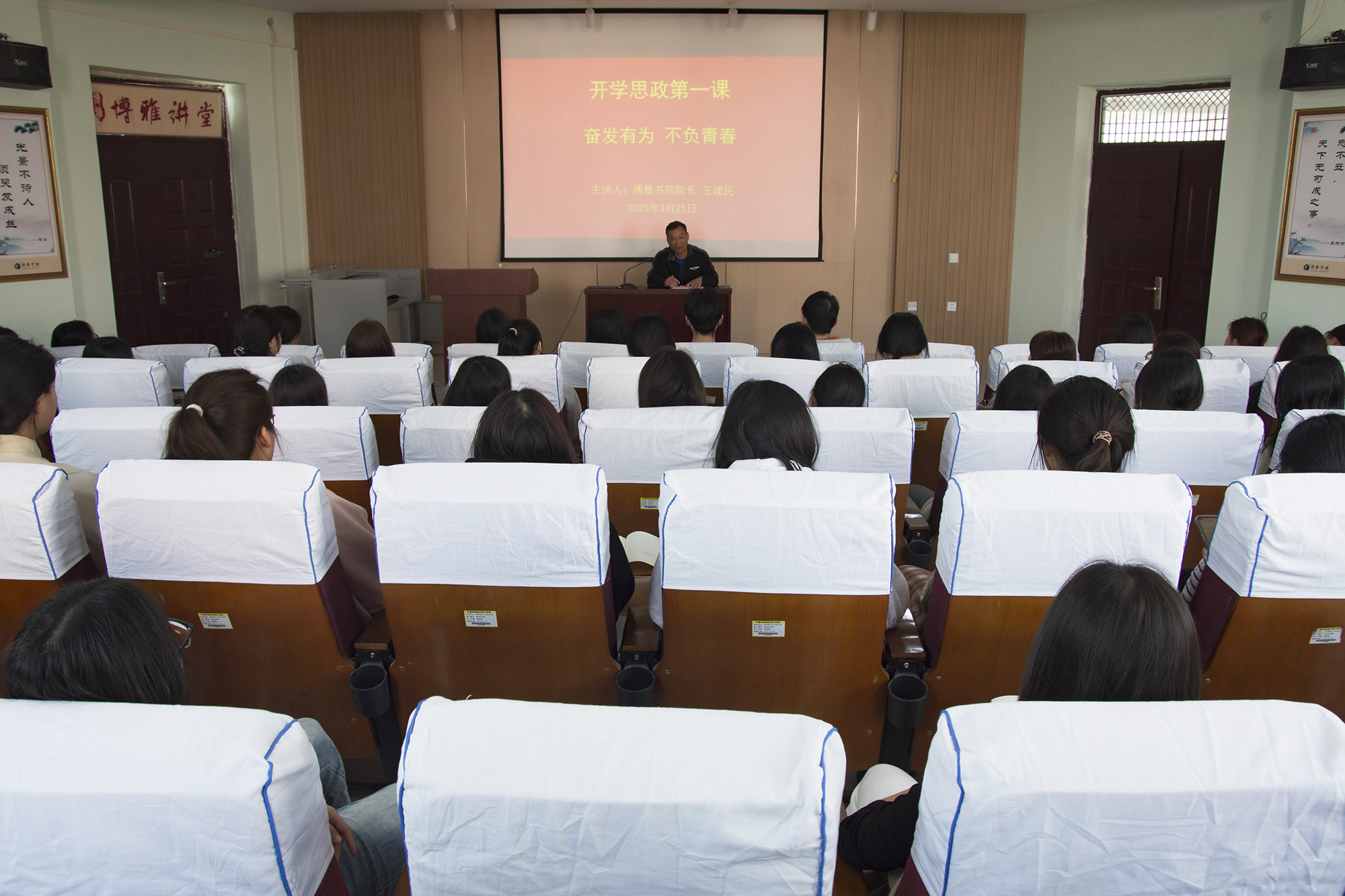 3月25日上午,博雅书院党委书记李俊杰、院长王建民分别以《勇担新的文化使命,激扬强大精神力量》、《奋发有为、不负青春》为题讲授开学思政第一课,学生代表80余人聆听讲座。