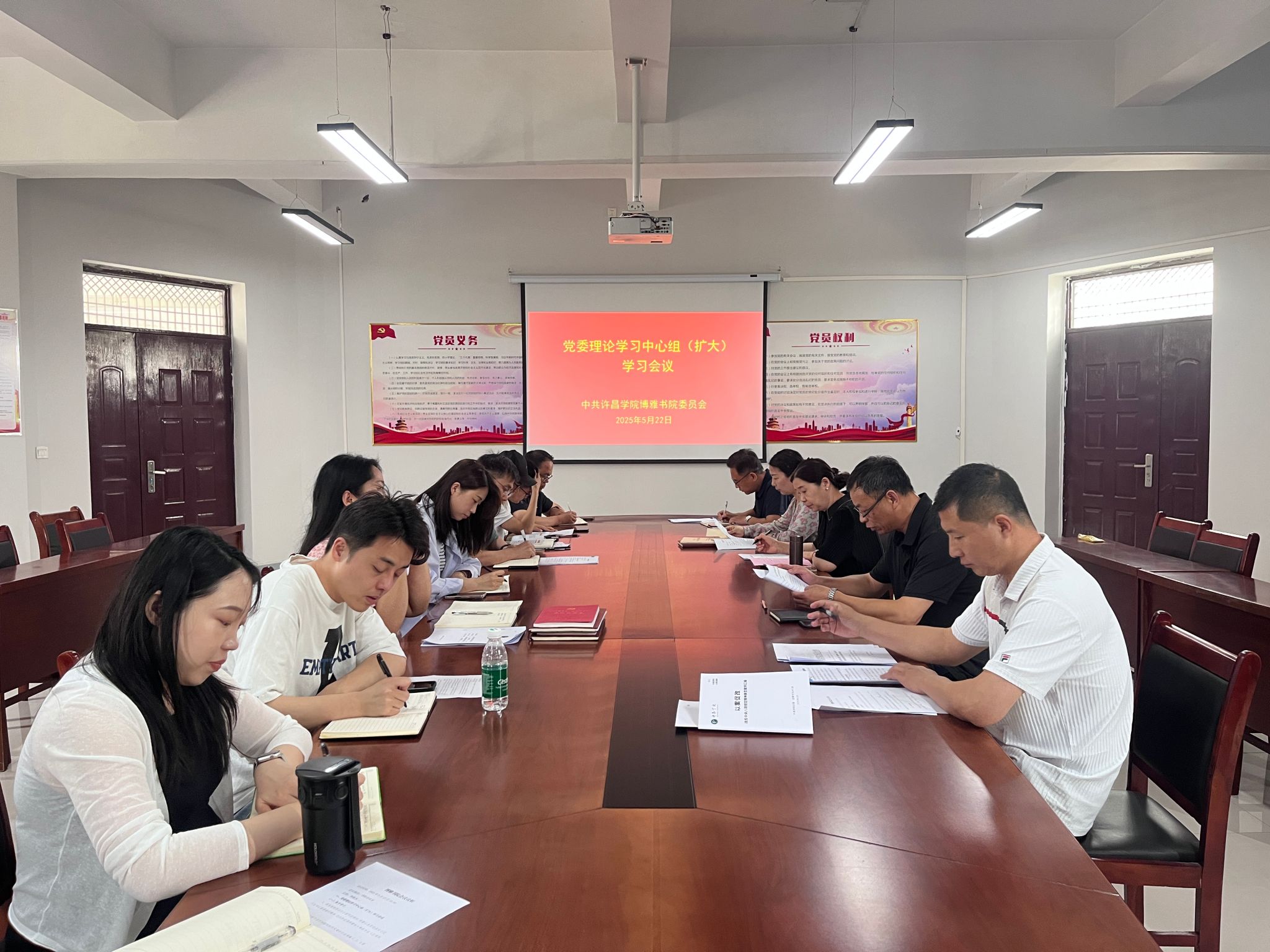 5月22日上午,我书院社区在党建活动室召开党委理论学习中心组(扩大)学习会议,会议由党委书记李俊杰主持,全体教职工参加会议。