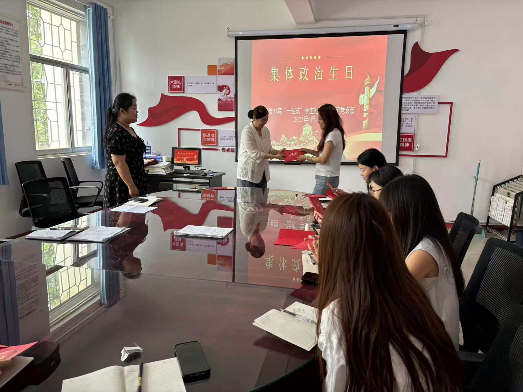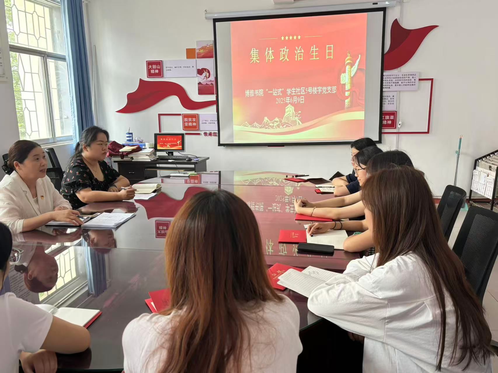 为进一步强化党员身份意识,淬炼党性修养。6月9日,我书院社区5号楼宇党支部在社区党团活动室为党员过集体政治生日,共忆入党初心。活动由支部书记贺琴主持,联点领导社区党委书记李俊杰、全体党员参加。