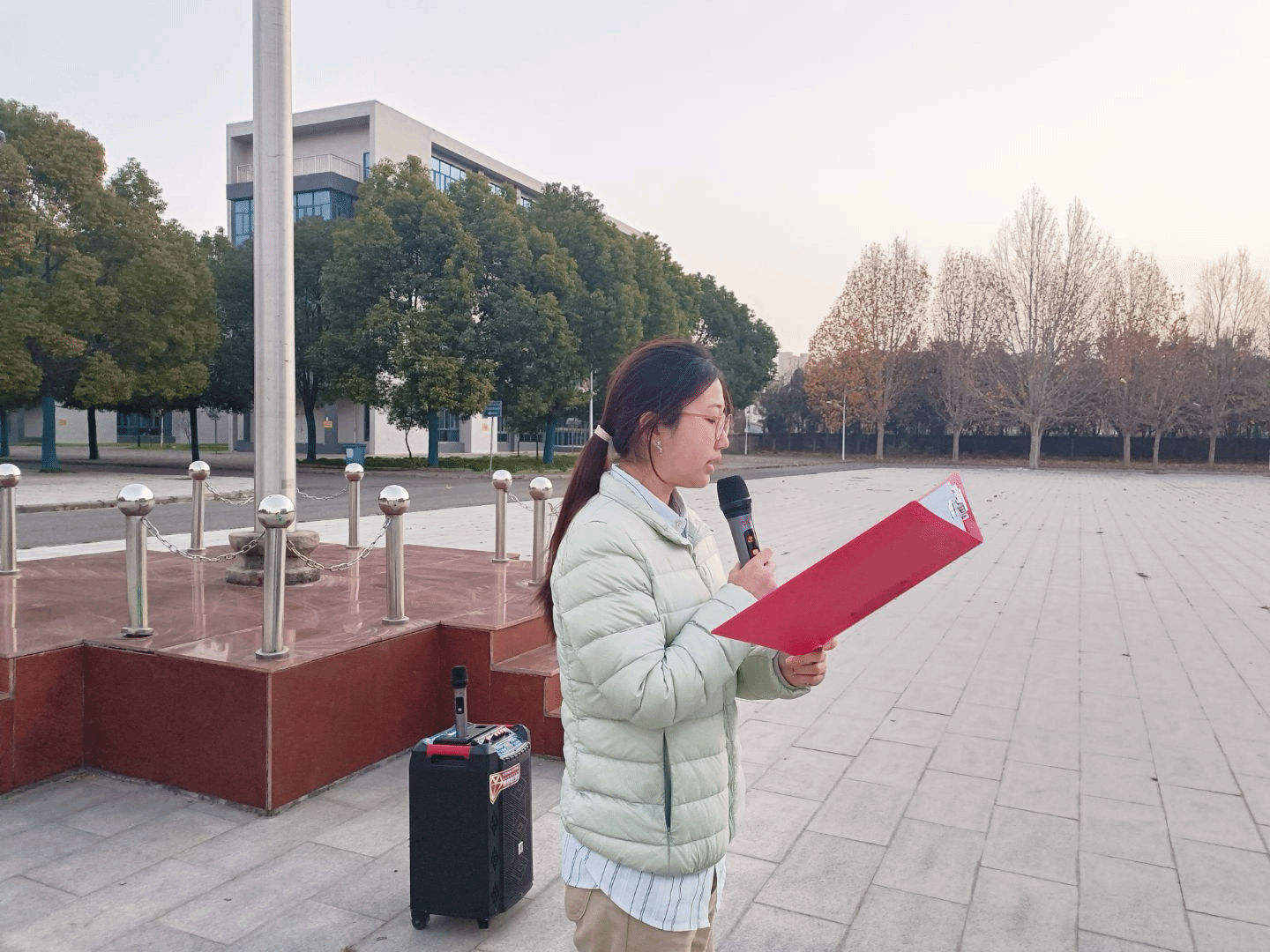 升旗仪式结束后,外国语学院2025级学生代表贺雨彤以“国旗下的青春誓言”为题作国旗下的誓言主题宣讲。她用激昂的语调、真挚的情感号召全体同学以理想为帆,以奋斗为桨,以担当为舵,在青春赛道上奋力奔跑,投入到学习和生活中去!
