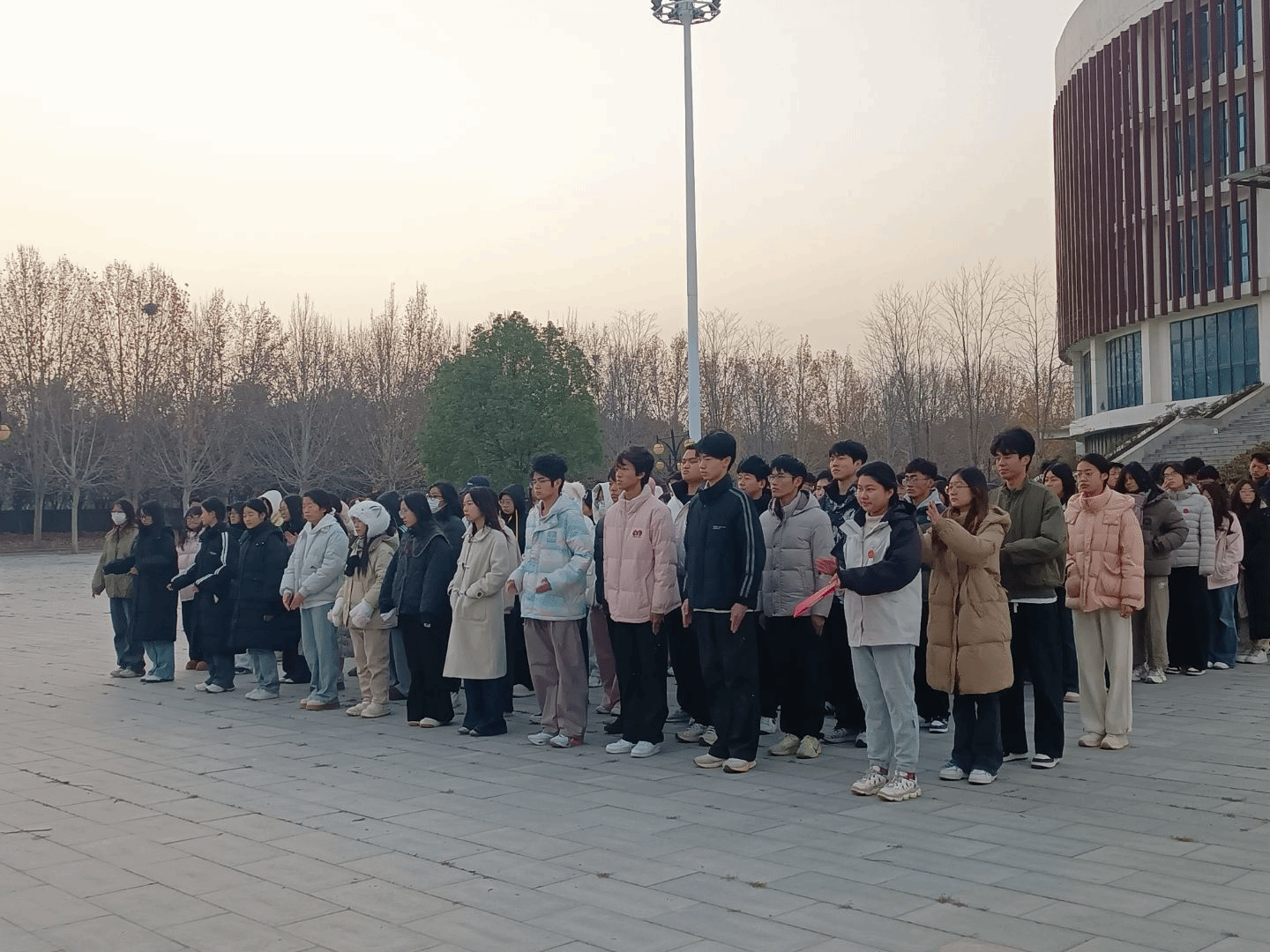 2025年12月1日,我书院社区在兴华路校区图书馆前举行升国旗仪式暨“国旗下的誓言”主题教育活动。参与此次活动的有博雅书院团委书记贺琴、外国语学院辅导员崔迄嘉、外国语学院2025级新生以及国旗护卫队队员。