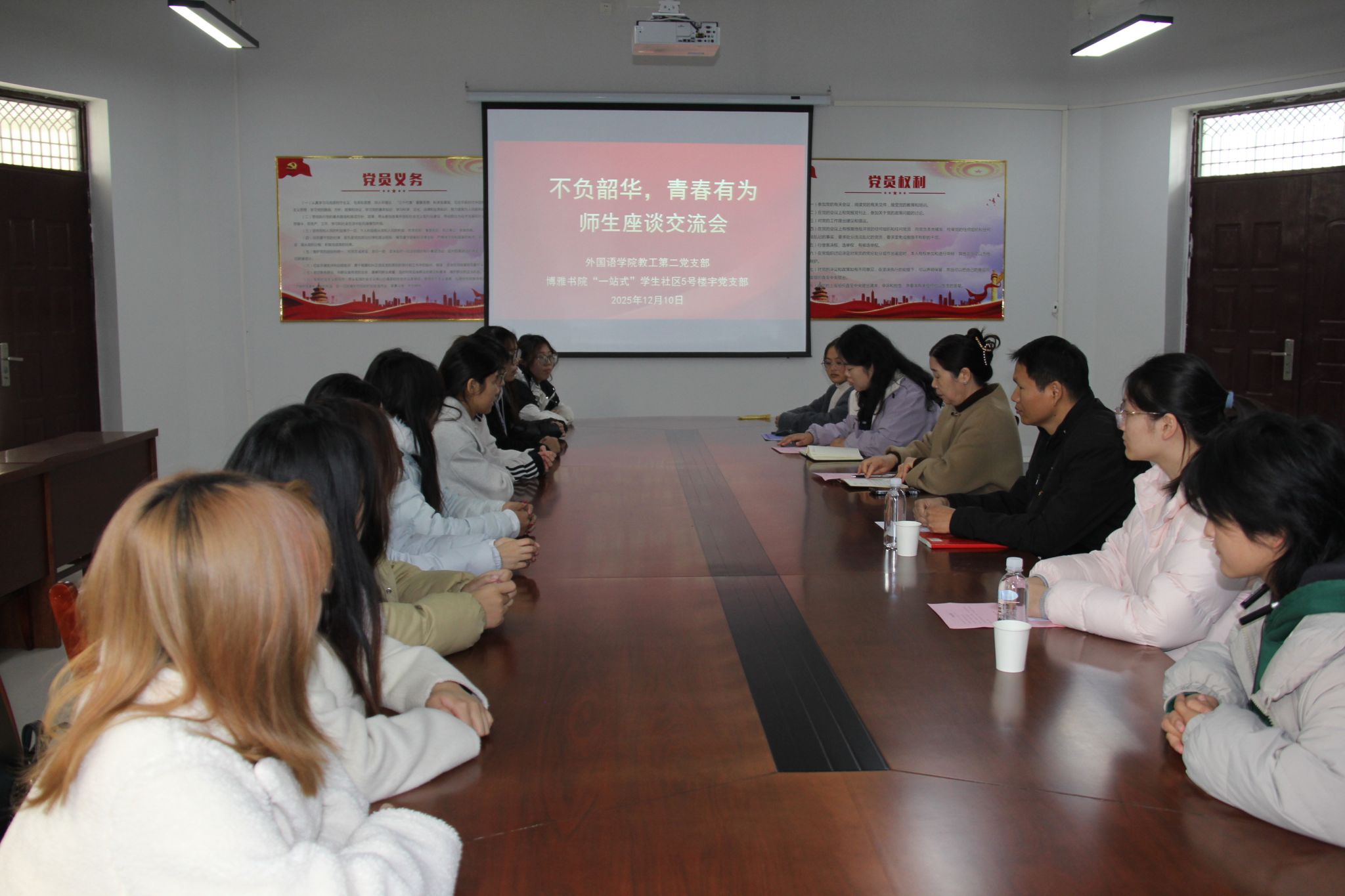 12月10日,博雅书院“一站式”学生社区5号楼宇党支部与外国语学院教工第二党支部在党建活动室开展党建联建活动,活动由5号楼宇党支部书记贺琴主持,博雅书院社区党委书记李俊杰、外国语学院教工第二党支部书记蔡忠良、外国语学院大学生党员标兵李晨以及5号楼宇党支部学生党员、学生代表参加。
