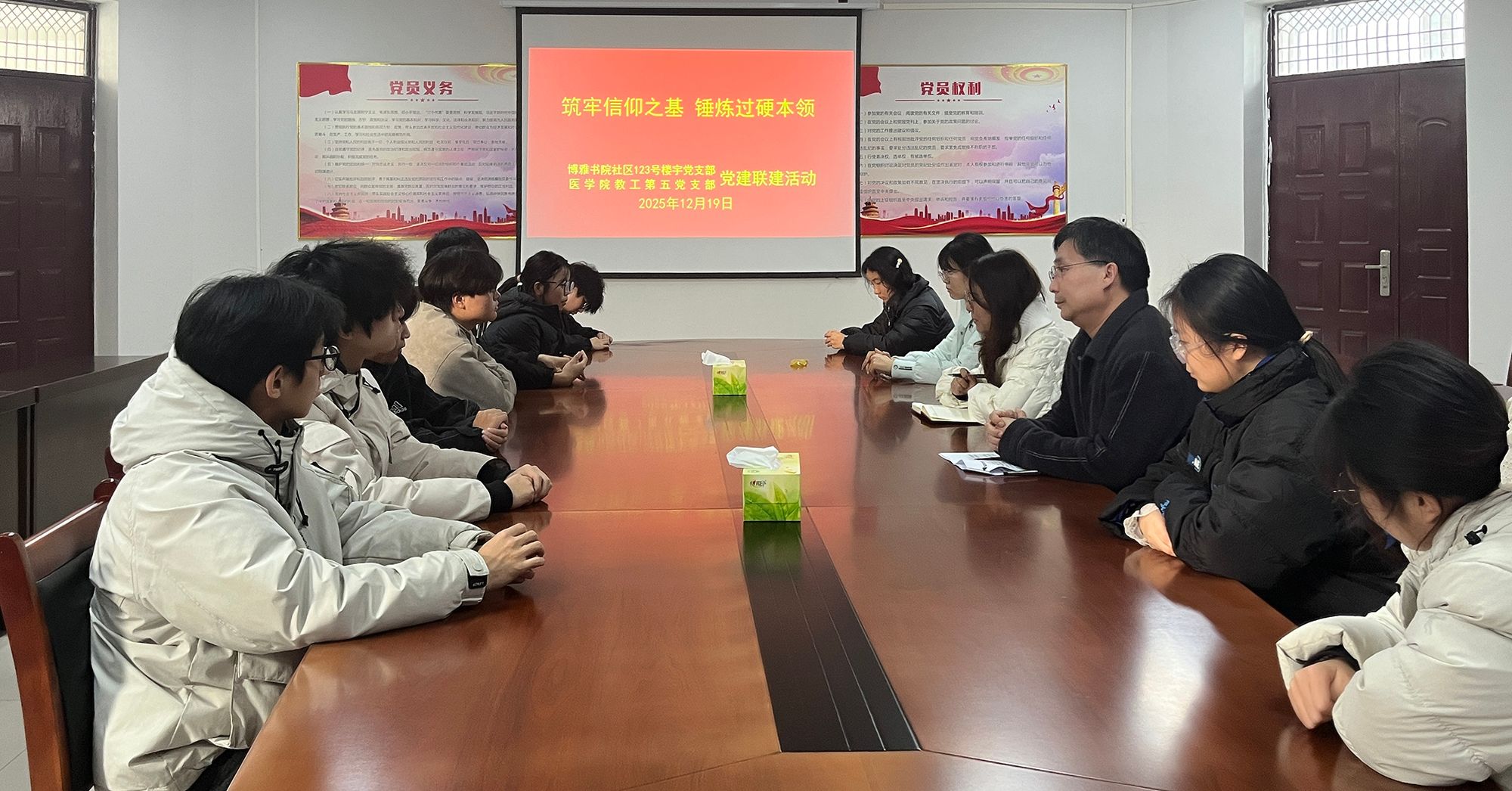 12月19日下午,博雅书院“一站式”学生社区123号楼宇党支部与医学院教工第五党支部共同开展“筑牢信仰之基 锤炼过硬本领”主题党建联建活动。活动由123号楼宇党支部王占欣老师主持。医学院教工第五党支部组织员李璐瑶老师以及123号楼宇党支部学生党员、学生代表参加了活动。
