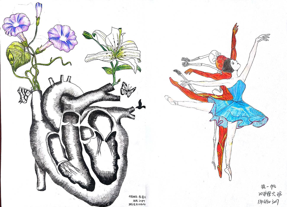 本次“绘画医学”作品征集大赛共设人体解剖绘画、医学结构绘画、健康科普绘画、同心抗疫绘画、医学风景绘画等5个小组,书院各专业均可参加,大赛共收到作品170余件。