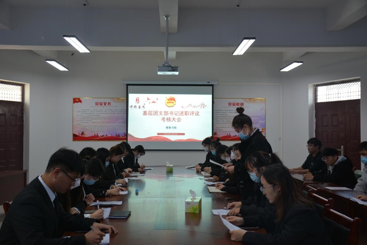 为全面贯彻落实团中央组织部《基层团组织书记述职评议考核暂行办法》(团组字〔2021〕1号)、共青团河南省委组织部《关于在全省集中开展基层团组织书记述职评议考核工作的通知》、共青团许昌学院委员会《关于在全校集中开展基层团组织书记述职评议考核工作的通知》精神,12月20日——22日,博雅书院开展基层团组织书记述职评议考核工作。