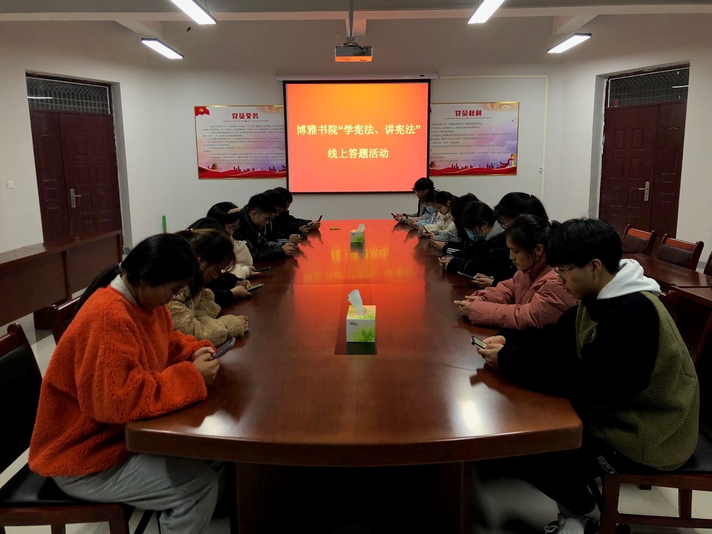 为深入学习领悟习近平总书记关于宪法学习宣传教育的重要指示精神,在博雅书院普及宪法知识、弘扬宪法精神、树立宪法权威,推动校园法治文化建设,我院根据《河南省教育厅关于实施河南省教务系统“宪法卫士”2021年行动计划的通知》要求,按照学校党委学生工作部安排部署,开展了丰富多样的学习与实践教育活动。