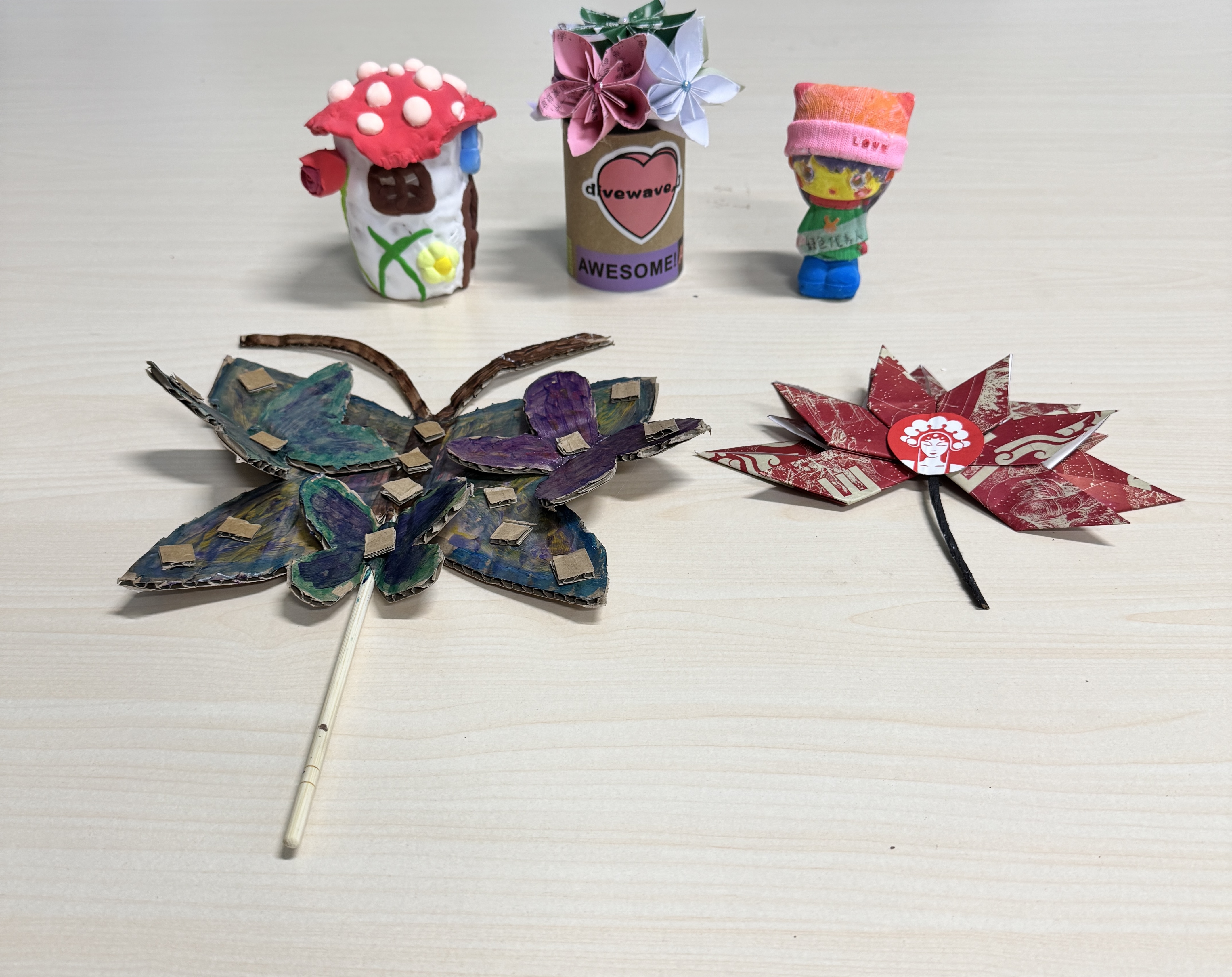 废品重生DIY工坊活动为同学们提供了一个发挥创意的平台。大家利用废弃材料,制作出各种植物主题手工艺品,如将塑料瓶改造成精致的花盆、用旧T恤制作实用的布袋、把废纸折成造型独特的笔筒等。这些凝聚着同学们智慧与环保理念的手工艺品,引得不少同学驻足欣赏,也将环保理念展现的淋漓尽致。