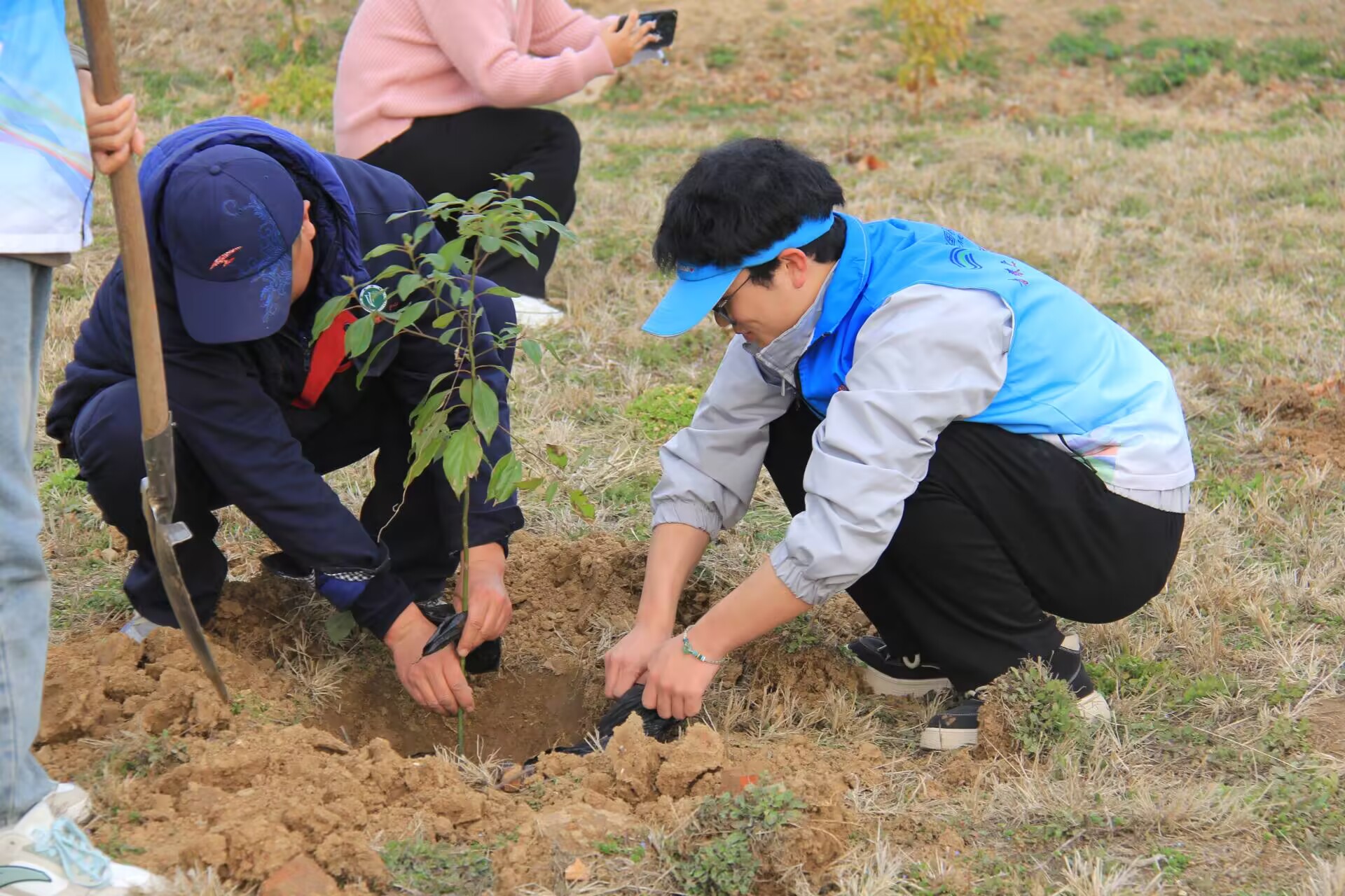 植树节当天,书院社区与后勤工作人员一起,开展“植树节志愿活动”,同学们身着统一服装,在专业人员指导下分工协作,用心种下树苗,大家手握铁锹、分工协作,铲土挖坑、摆正幼苗、浇水浸润、团结协作、有序分工,为校园增添盎然绿意,尽显环保的热情与青春的活力。