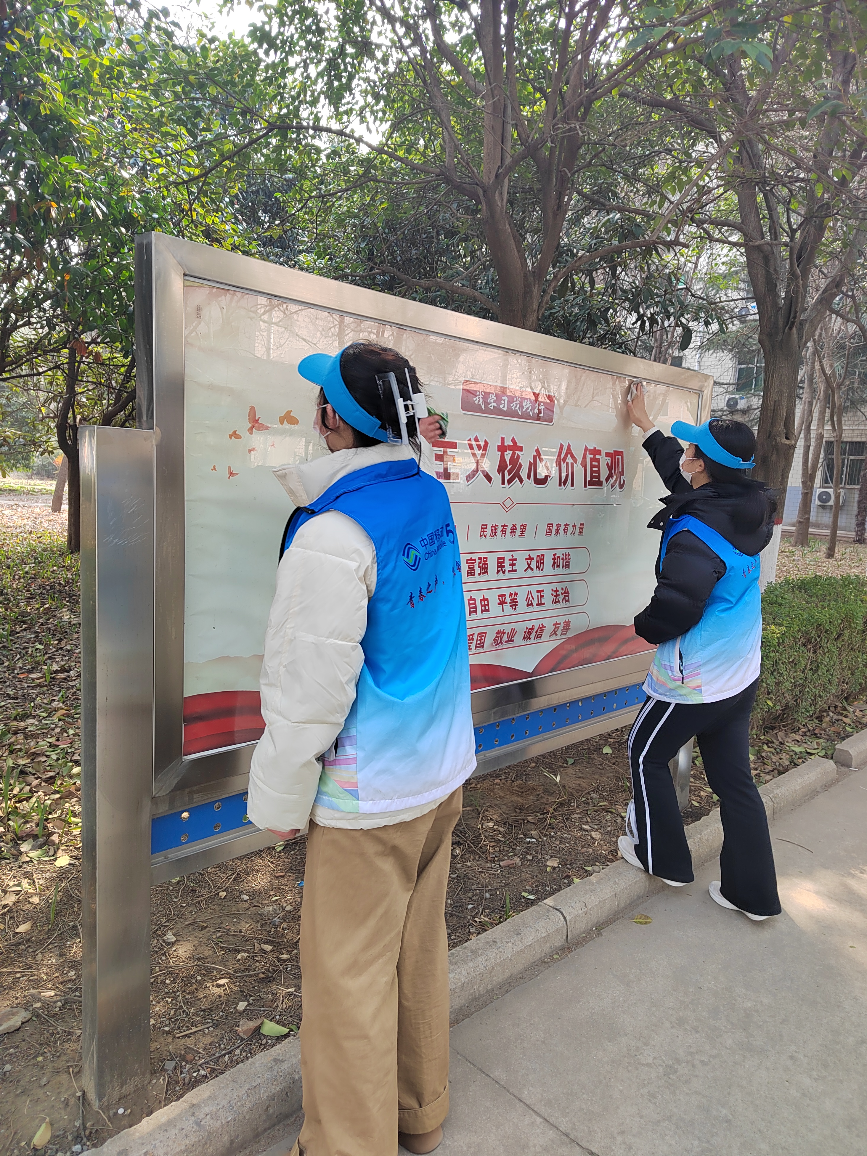 3月9日,我书院社区组织学生开展“擦亮校园窗口,争做雷锋传人”志愿服务活动。书院学生社区管理委员会实践拓展部组织志愿者们提前进行培训,讲解校园展牌擦拭技巧、校园车棚整理方法及交通引导注意事项等。活动中,同学们相互协作、有条不紊,突出“不怕脏不怕累”的奉献精神,用实际行动传递自觉维护环境卫生的责任和意识。本次活动以劳动教育的形式增强了大家的责任感和使命感,让雷锋精神成为学子内心的坚守、行动的自觉。