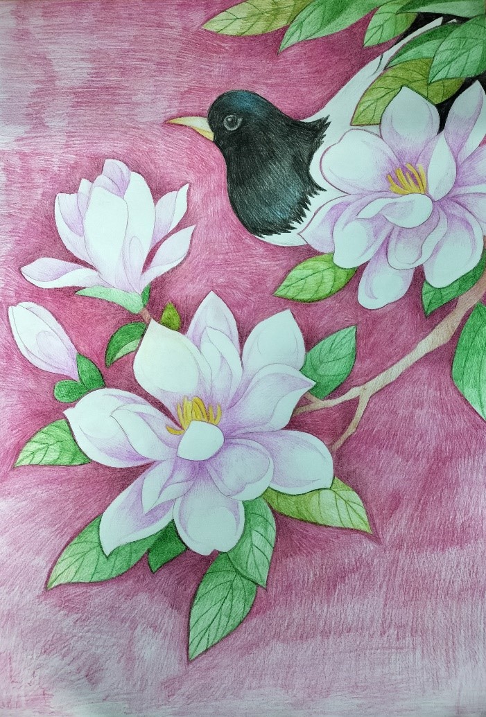 活动期间,同学们或齐聚玉兰花下,声情并茂地朗诵以玉兰为主题的经典诗词,在诗词的韵律中,深刻感受中华优秀传统文化的魅力。或围绕“玉兰花”“春日”“春景”“春思”“春游”等主题,创作传统诗词、藏头诗或藏尾诗,展现玉兰之美,感受春日诗意,并发挥创意,运用绘画、剪纸、书法等多种形式,将诗词誊写或绘制在书签上,一枚枚精美的书签不仅展现了他们的文学才华,更传递出对自然之美和诗词之韵的独特感悟。或通过镜头捕捉校园玉兰的美丽瞬间,一幅幅精彩的作品生动展现了玉兰的迷人风采和校园生活的点滴美好。或阅读经典文学作品,并分享读书心得,感受文学魅力,提升人文素养。或围绕玉兰主题挥毫泼墨、精心创作,展现书画艺术的独特魅力,传承了中华艺术文化。