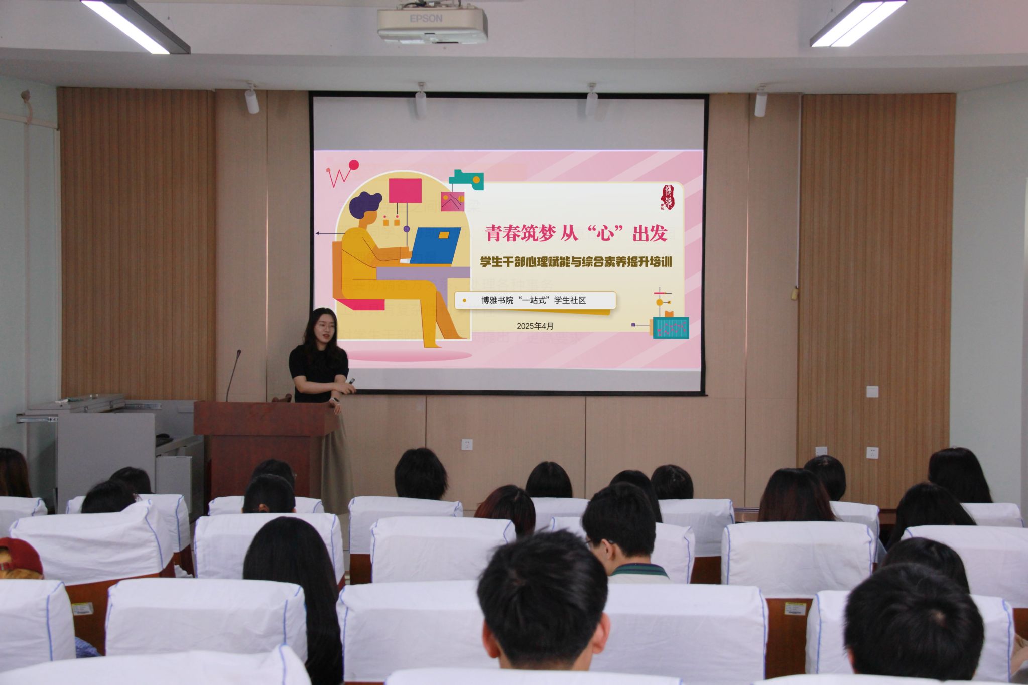 4月16日,博雅书院课外培养中心副主任沈祺以“青春筑梦 从‘心’出发——学生干部心理赋能与综合素养提升培训”为题,分别从学生干部的角色定位、常见的心理情绪问题、心理情绪疏导方法与技巧、心理支持资源介绍等四方面内容给学生进行培训与讲解,结合实际案例强调学生干部注重心理健康和及时排解不良情绪的重要性,以进一步调整自身状态、提升心理韧性、工作能力和团队协作能力,以更好的状态服务同学、锻炼自身,不断促进个人成长、提升工作效能。