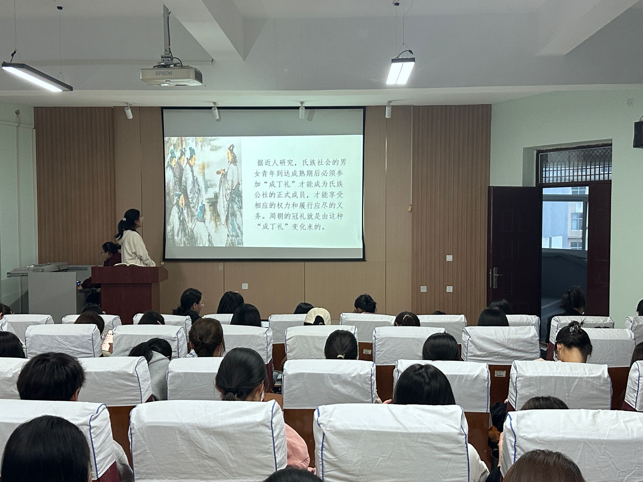 在历史的长河中,中国古代礼俗犹如一颗璀璨的明珠,闪耀着独特的光芒。从阶级阶层的划分到冠礼、婚姻等重要仪式,这些礼俗不仅反映了古代社会的结构与价值观,更承载着深厚的文化内涵。5月8日,一场关于中国古代礼俗的讲座在博雅书院社区302室成功举办,讲座由2024级汉语言文学专业学生鲁思元主讲,吸引了众多感兴趣的同学参与。