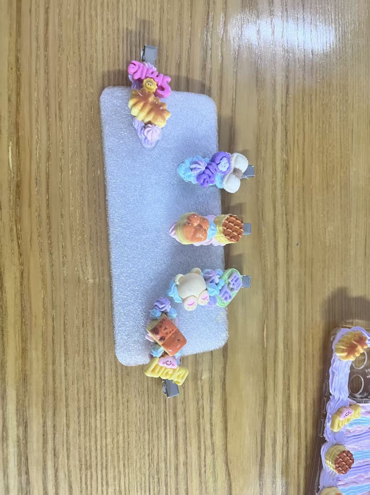 活动当天,博雅书院楼前人潮涌动,欢声笑语不断。参与者们在社团工作人员指导下,手持裱花嘴,将细腻的奶油胶自由挥洒于手机壳、发夹、钥匙扣等载体上,辅以闪片、卡通公仔、珍珠等丰富配饰,创作出风格各异的作品,每一件作品都凝聚着创作者的细腻的心意与巧思。