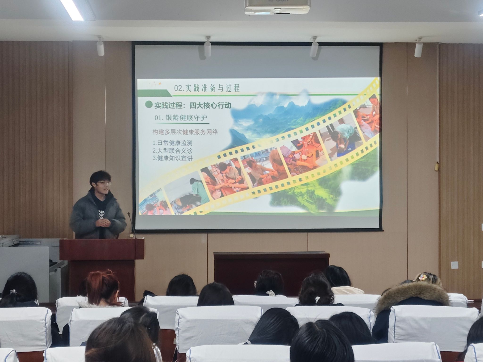 讲座中,付文敏、韩承珂以育苗筑梦社会实践团队骨干成员身份进行成果展示。该实践团队根据职能不同划分医疗专项调研、童心护航成长、银龄健康守护、全民急救赋能四个实践小组,他们紧扣社会需求开展系列特色实践活动,用青春行动诠释责任担当。凭借扎实的实践成效,该团队成功斩获校级示范团队、省级重点团队荣誉称号,充分展现了我书院社区学子昂扬向上的实践风采与过硬本领。