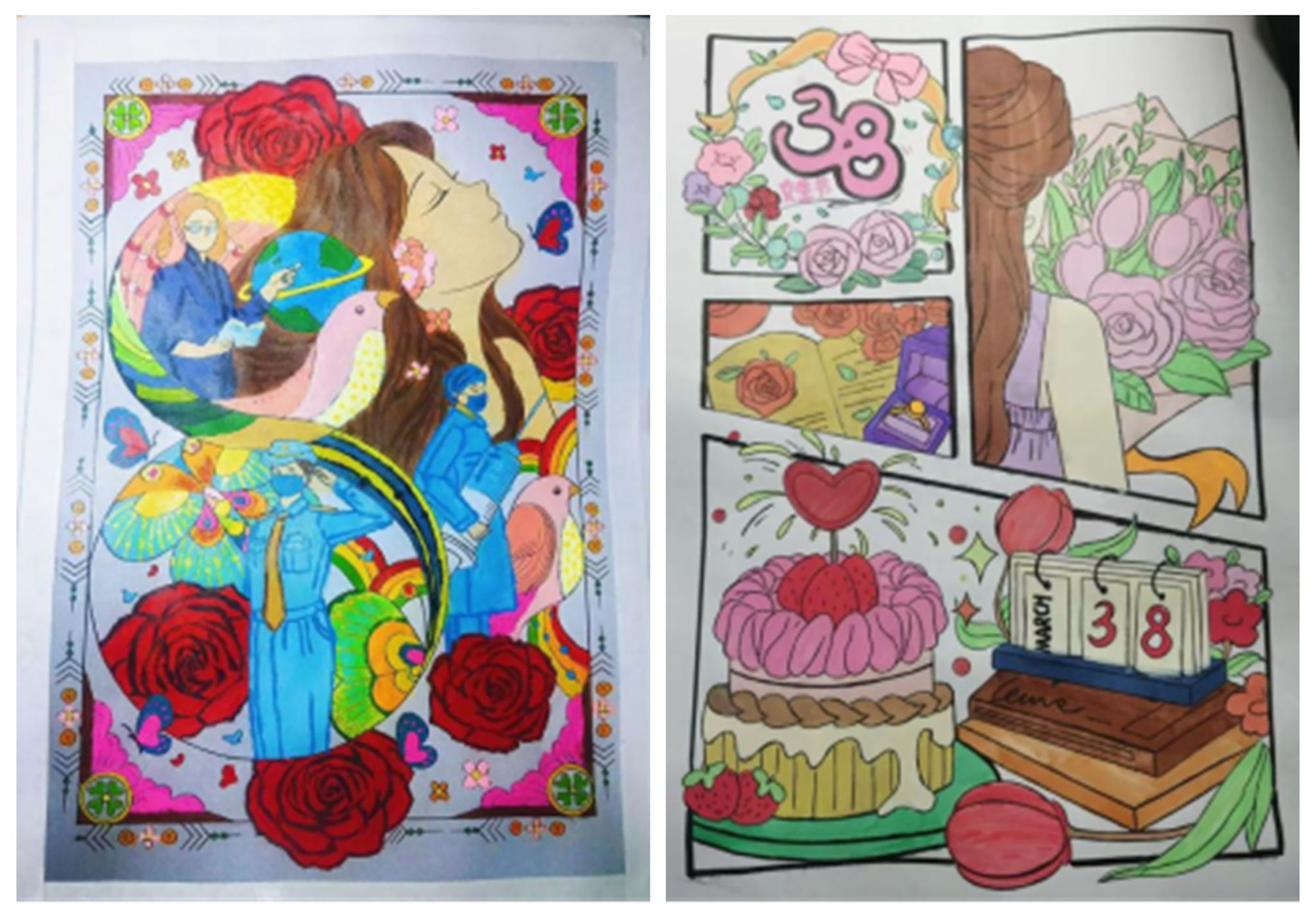 “她·印象”三八妇女节主题绘画比赛同步开展,同学们围绕女性风采、女性成长、女性力量、多元之美等核心方向展开创作。水彩、素描、插画、漫画等多样表现手法交相辉映,大家用色彩与线条勾勒新时代女性独立、自信、坚韧、温柔的多元形象,传递对女性价值的礼赞与对美好未来的向往。作品兼具艺术性与思想性,充分展现了同学们扎实的艺术功底与独特的创作视角。