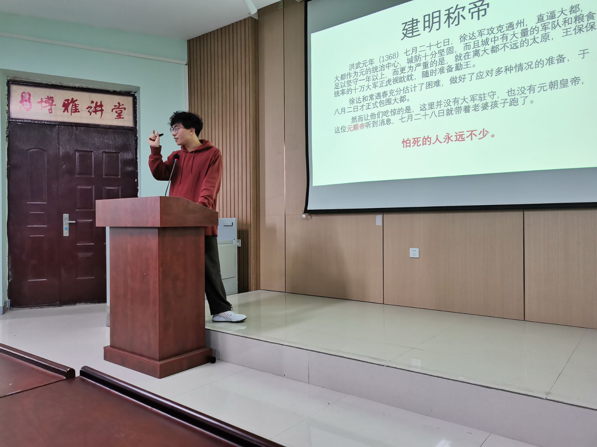 两位同学以生动有趣的语言讲述了明朝的北伐与文治,在场的同学犹如置身历史,对明朝初期的历史有了更深入的了解。